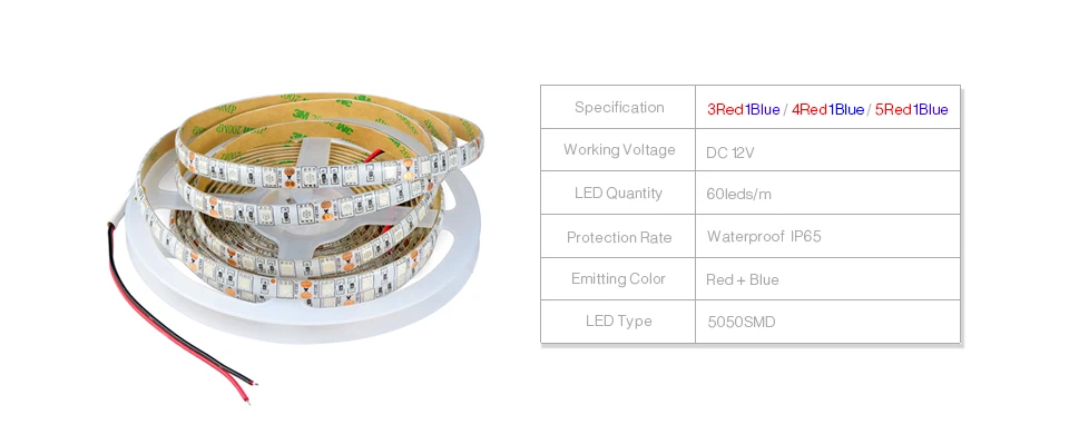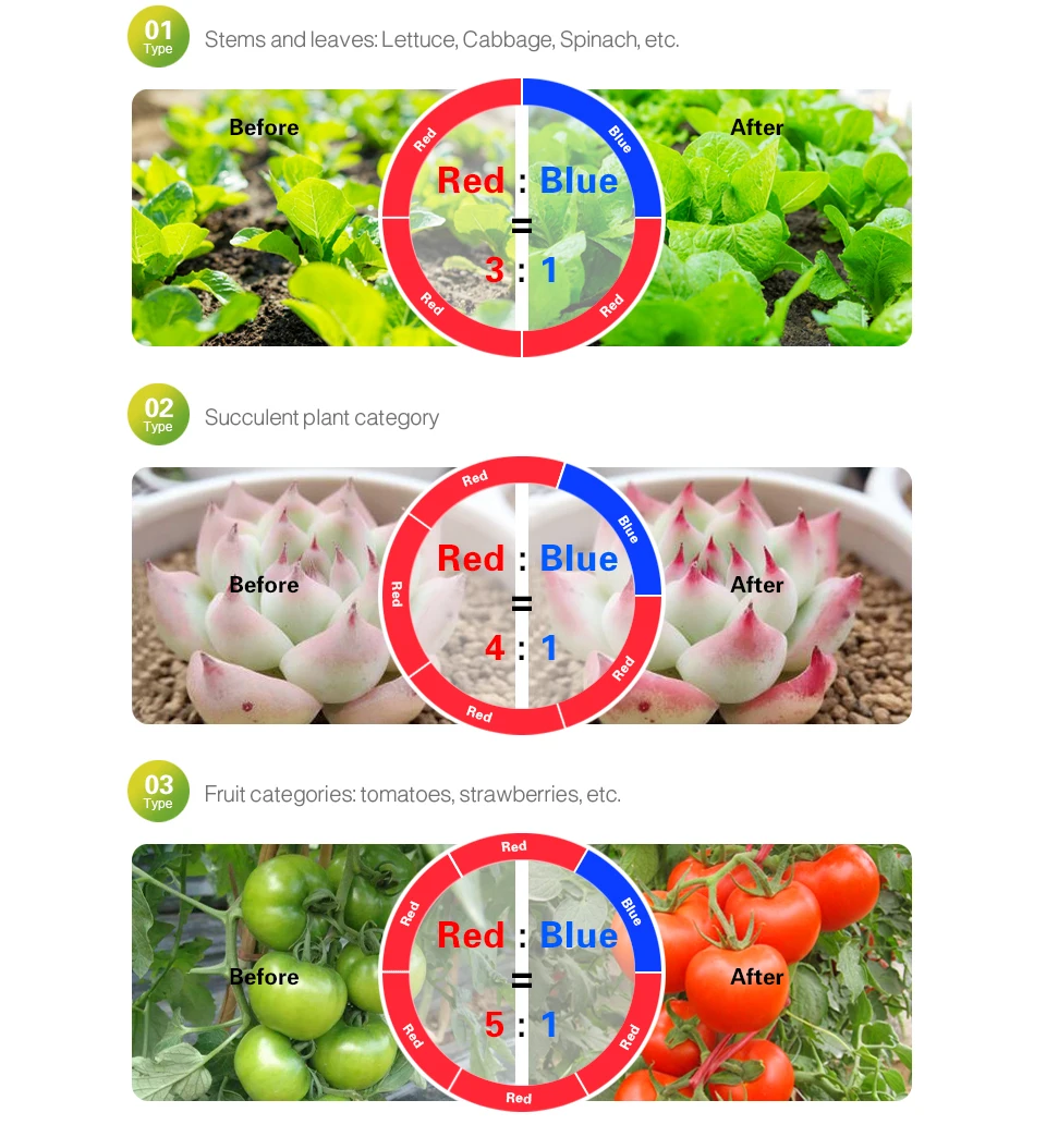 Светильник Цвет: красный и синий (красный: синий = 3:1 или 4:1 или 5:1)