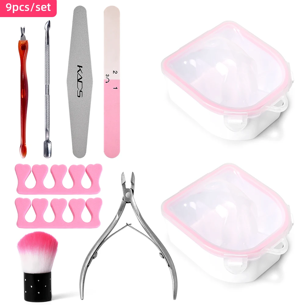 Маникюрный набор, набор спа-инструментов: 2 шт, чаша для замачивания ногтей, 1 шт, нож для кутикулы, 1 шт, толкатель из нержавеющей стали, пилочки для ногтей и буферный шлифовальный блок, вилка для омертвевшей кожи, 1 пара ножниц для омертвевшей кожи, пара разделителей для пальцев ног, 1 шт. щетка для ногтей, 1 шт. толкатель для кутикулы. Набор для снятия лака для ногтей