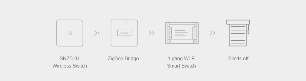 Сопряжение SONOFF SNZB-01 переключателем и мостом, вы можете управлять подключенными жалюзи через переключатель в любом уголке дома