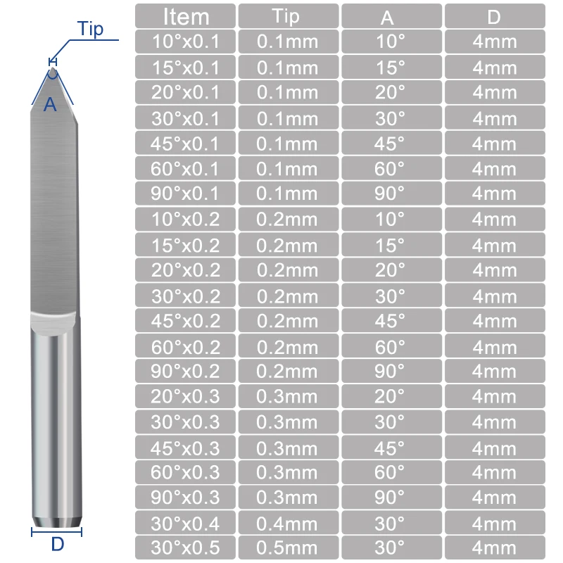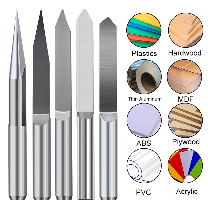 CNC инструменты для резьбы на плоской подошве 4 мм хвостовик вольфрамовый Карбид V Гравировальный фрезерный станок для дерева акриловый пластик ПВХ фреза