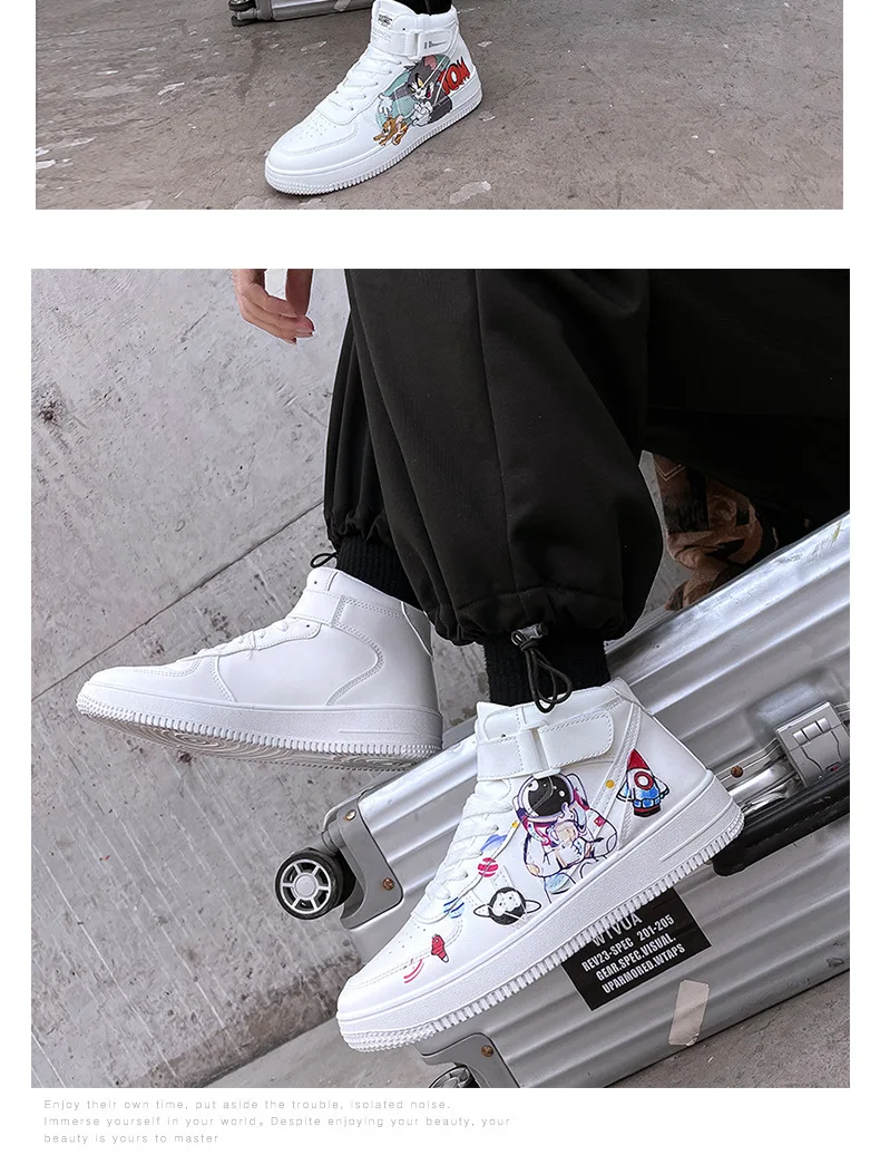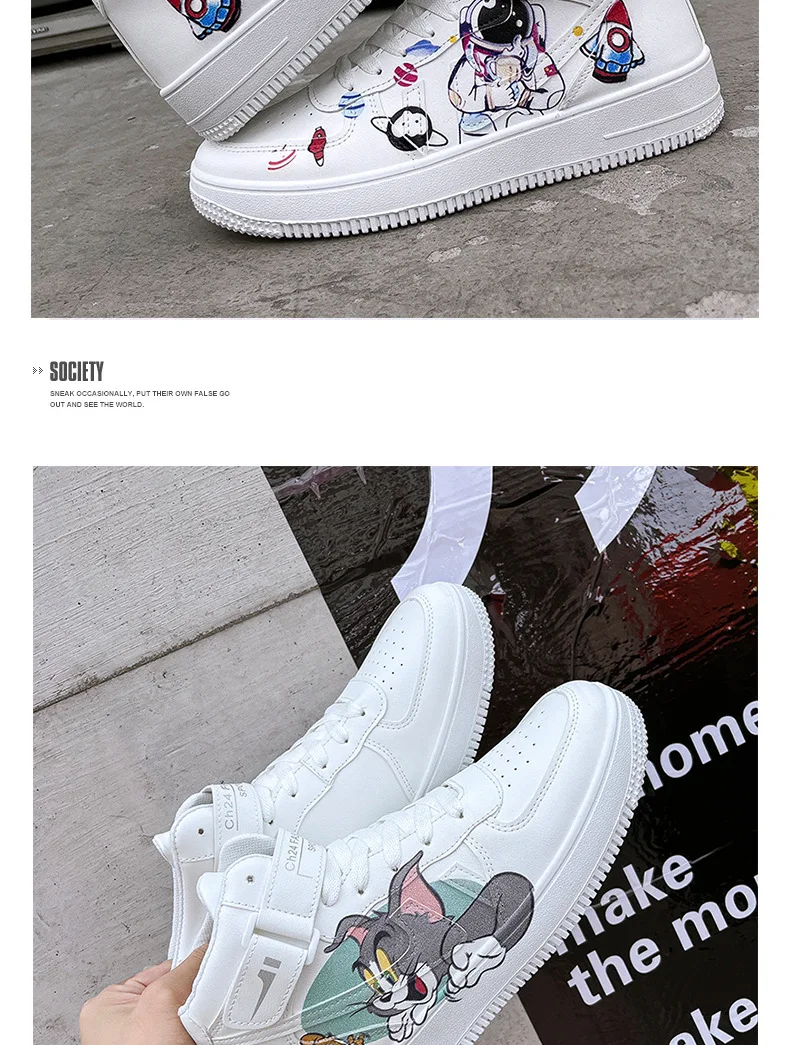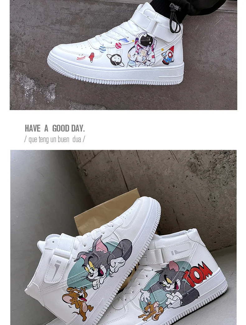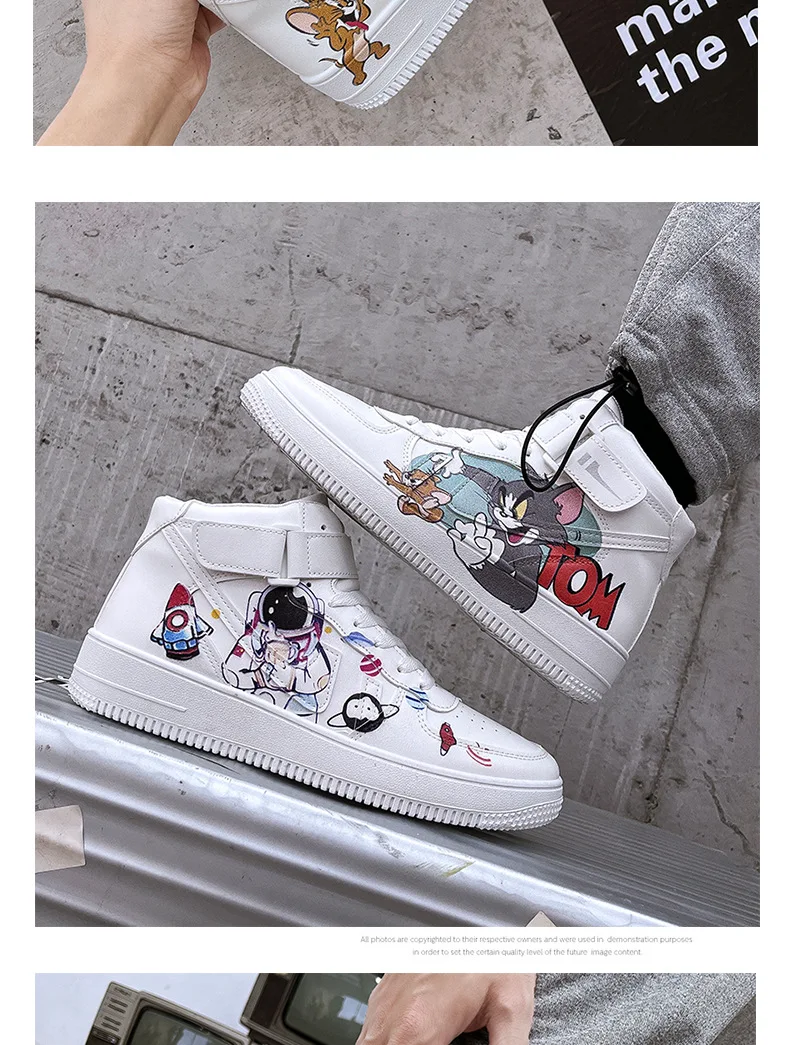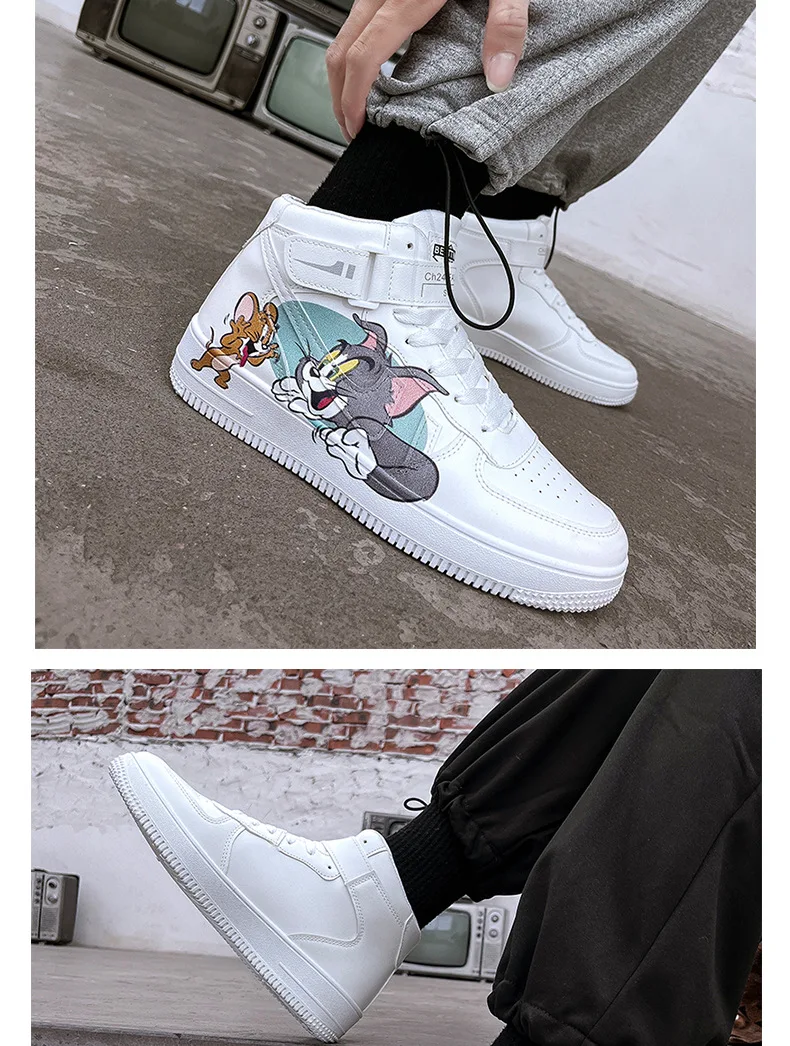HUILI AF 1 Стильная белая повседневная обувь с рисунком Тома Джерри для мужчин, Нескользящие студенческие мужские кроссовки, новая зимняя обувь