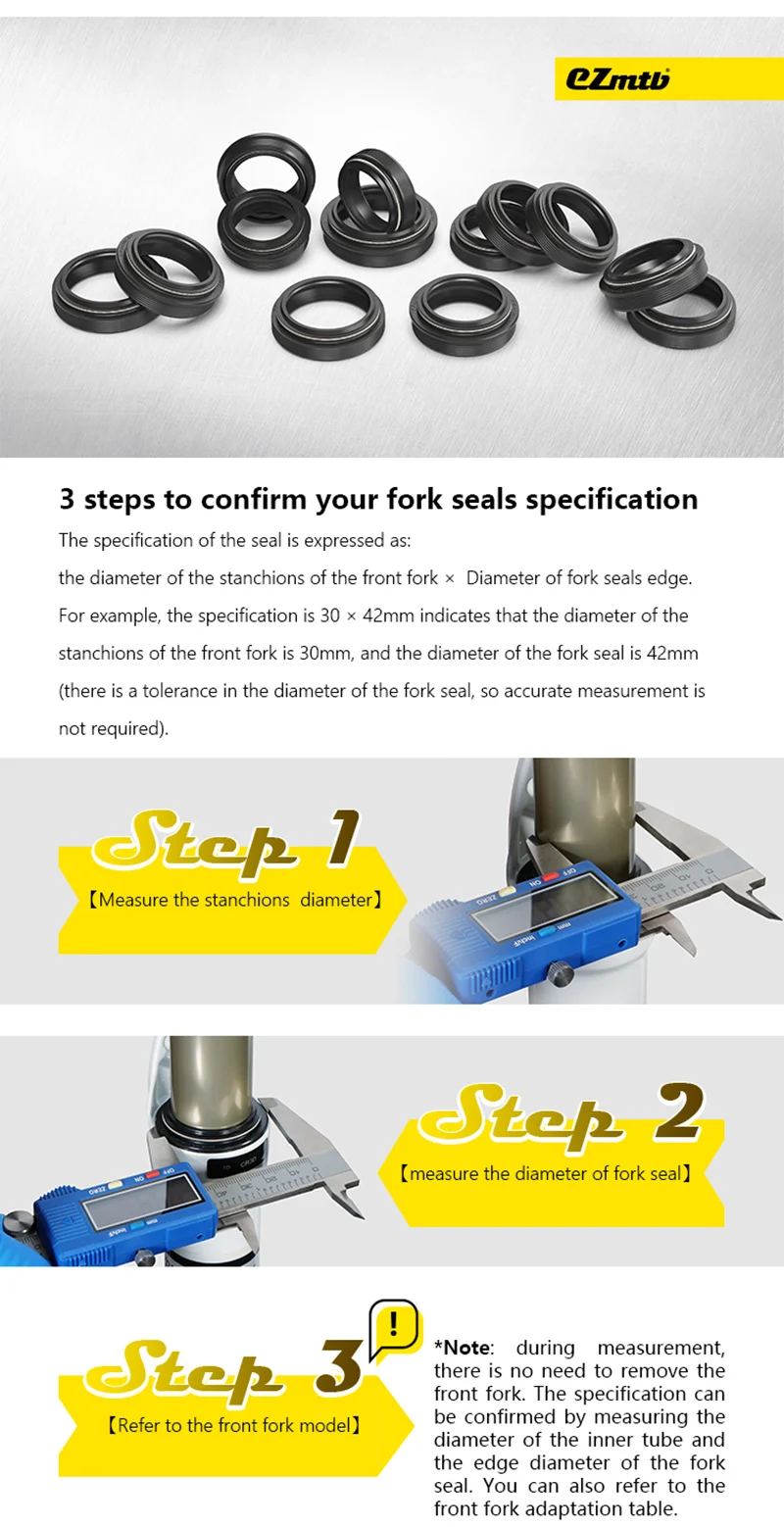 Размер: (диаметр стойки передней вилки × диаметр края вилки уплотнения.)