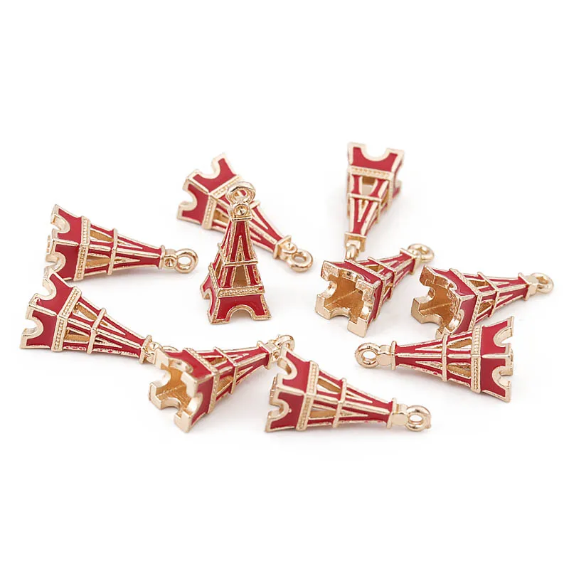 10 шт./лот, Красочные ажурные эмалированные Подвески с Эйфелевой башней для изготовления ювелирных изделий, аксессуары, подвеска из сплава, DIY браслет, ожерелье