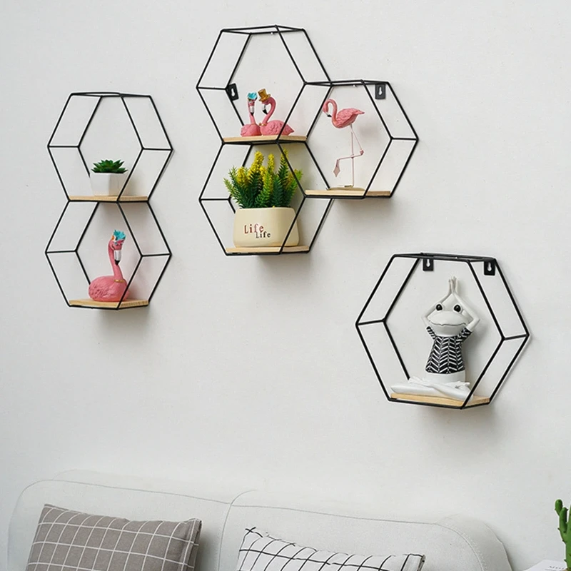 Бесшовная сварка и дизайн с двойным шестигранным узором, этот Железный держатель для хранения выглядит изысканно, стильно и отлично подходит для украшения вашей стены.