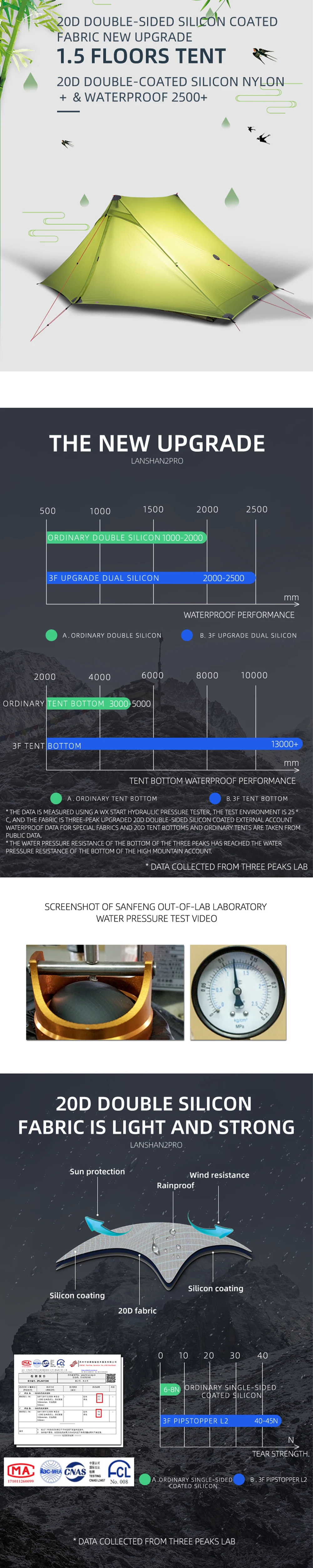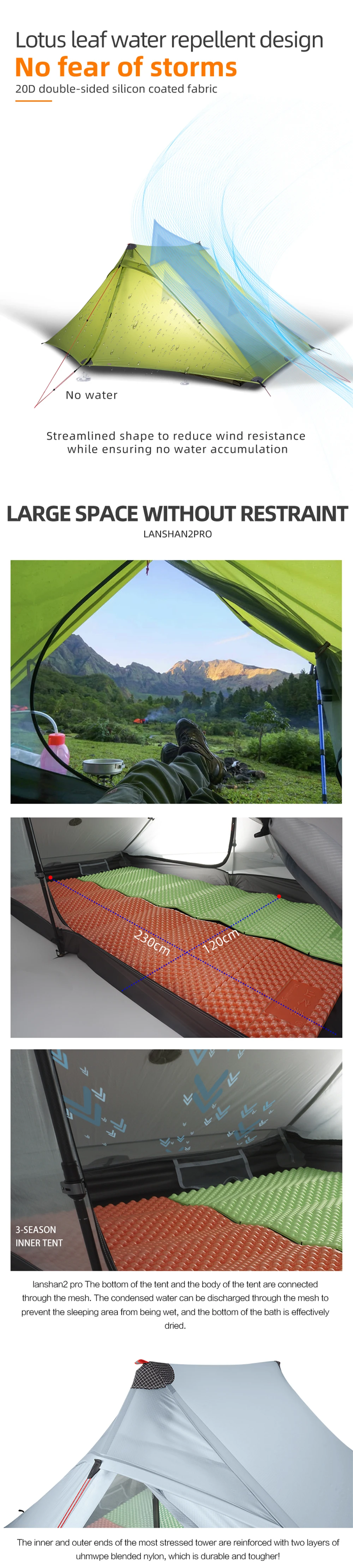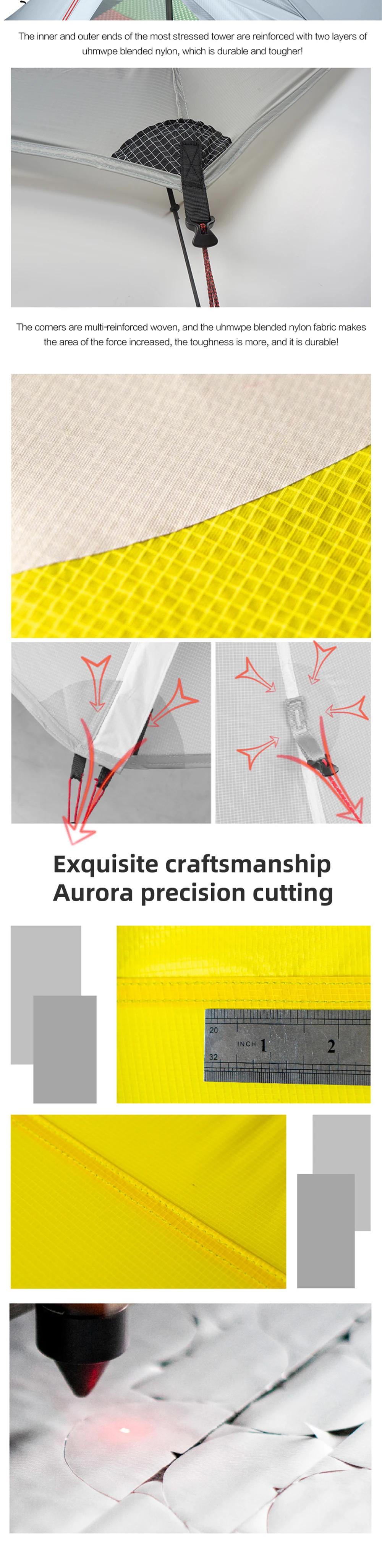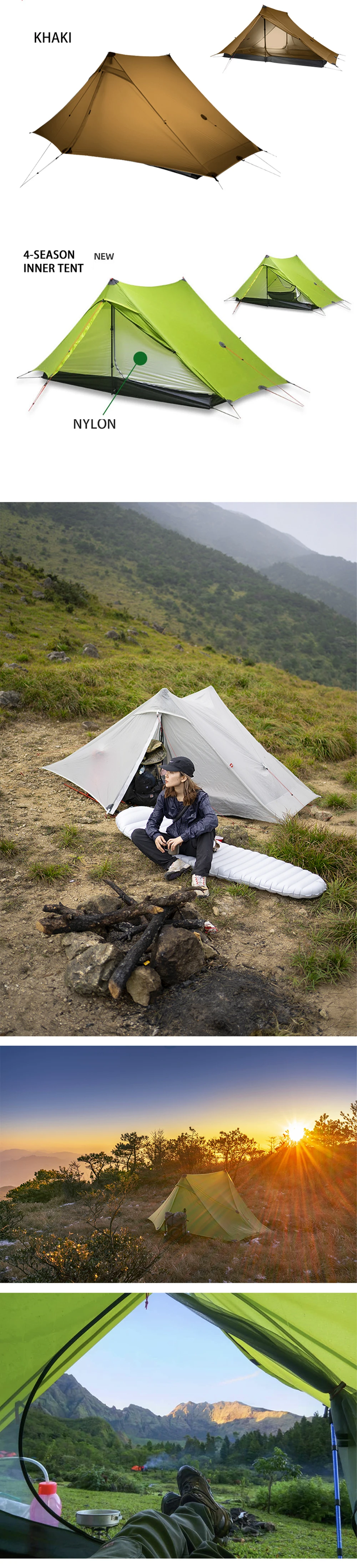 Внутренняя палатка: нейлоновая сетка 20 D (3 сезона)/нейлон 15D (4 сезона)