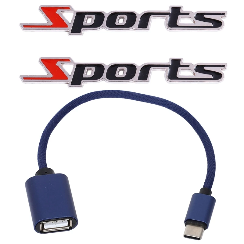 2 шт. спортивные буквы автомобиля значок стикер и 1 шт. usb otg Тип c к usb адаптеру