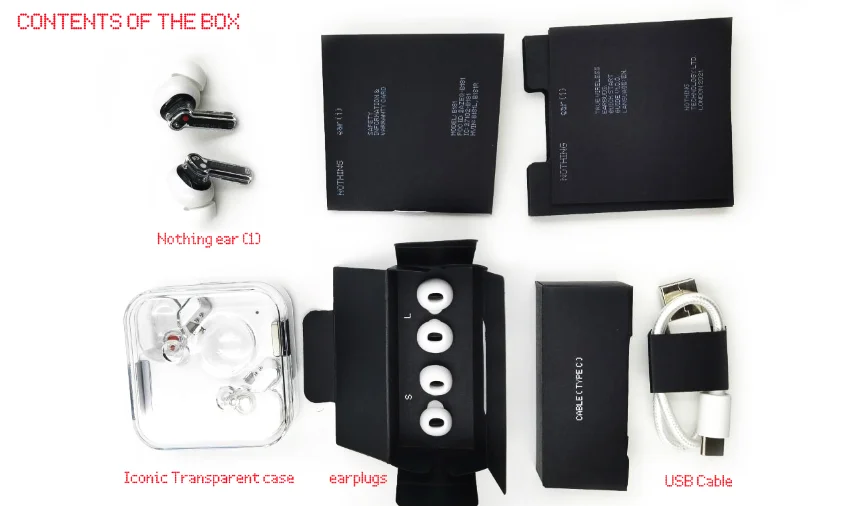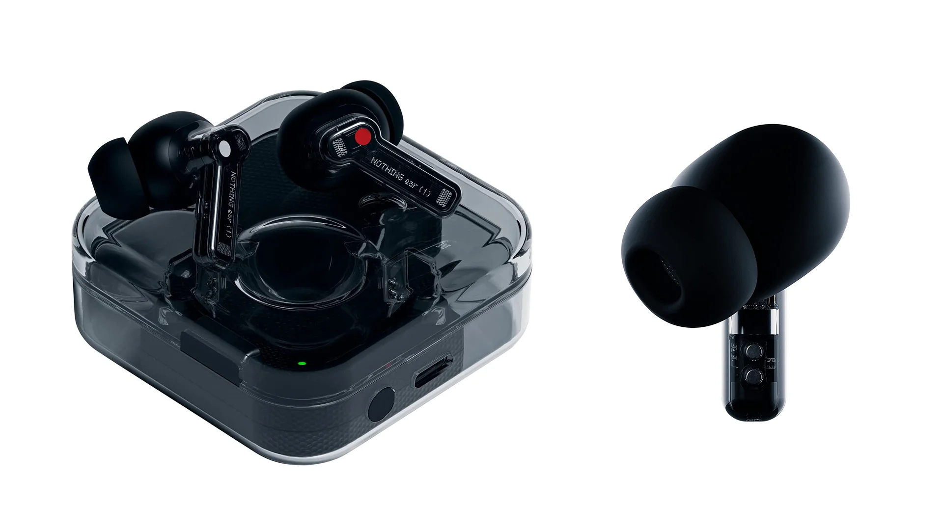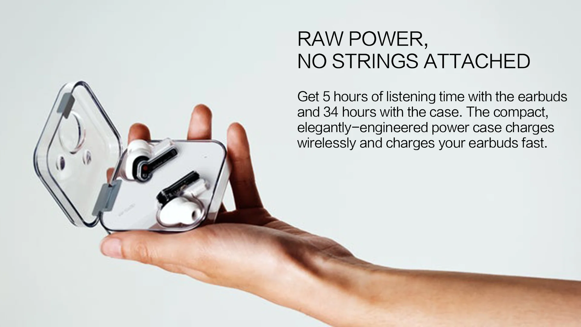 Ухо (1) заряжает внутри чехол; Ухо (1) чехол заряжает с QI совместимыми беспроводными зарядными устройствами или USB-C зарядными устройствами