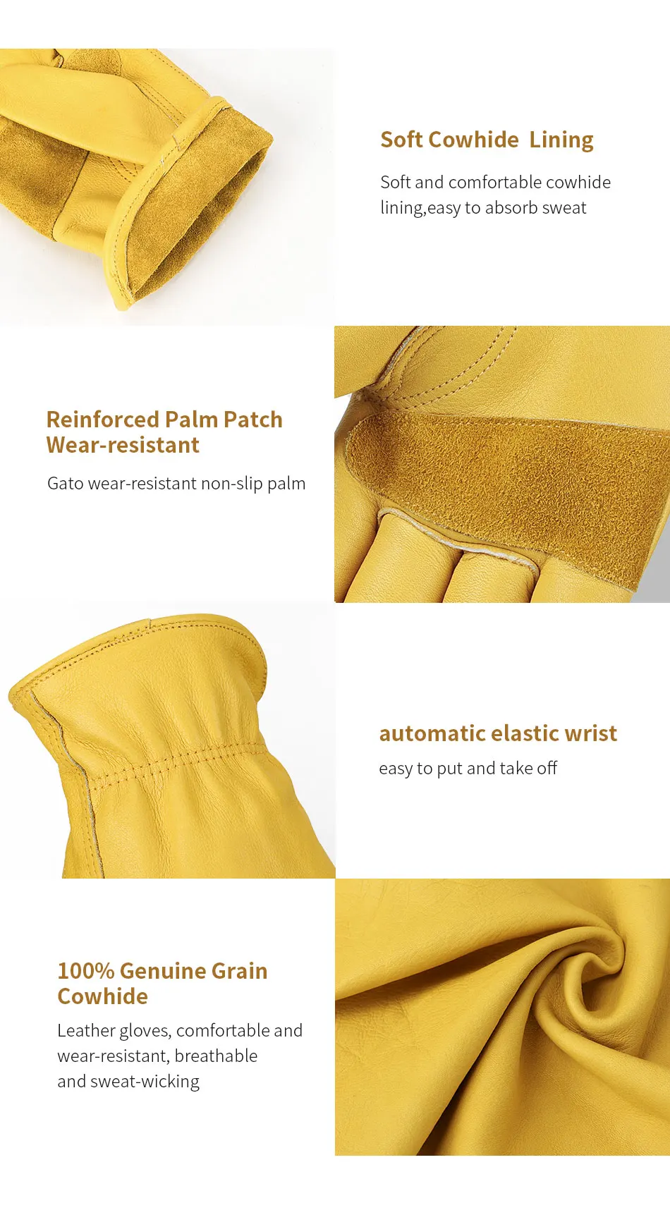 Эти кожаные рабочие перчатки имеют усиленный патч в форме пальмы, который дает вам превосходное сцепление и износостойкость. Эластичный дизайн запястья сохранит грязь и мусор внутри перчаток.