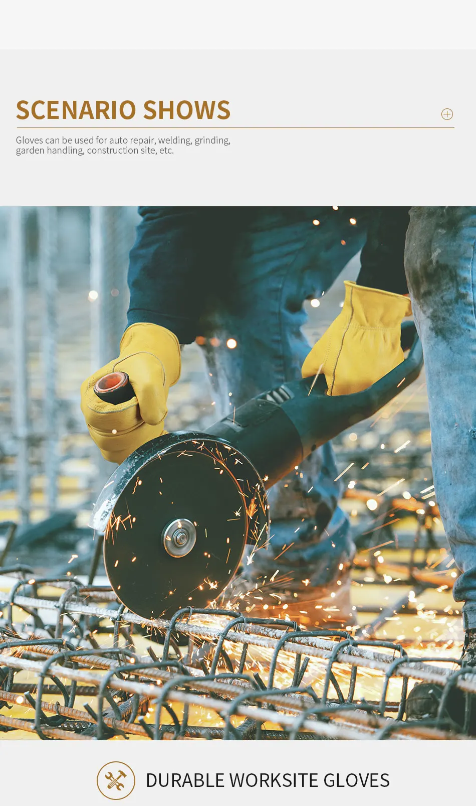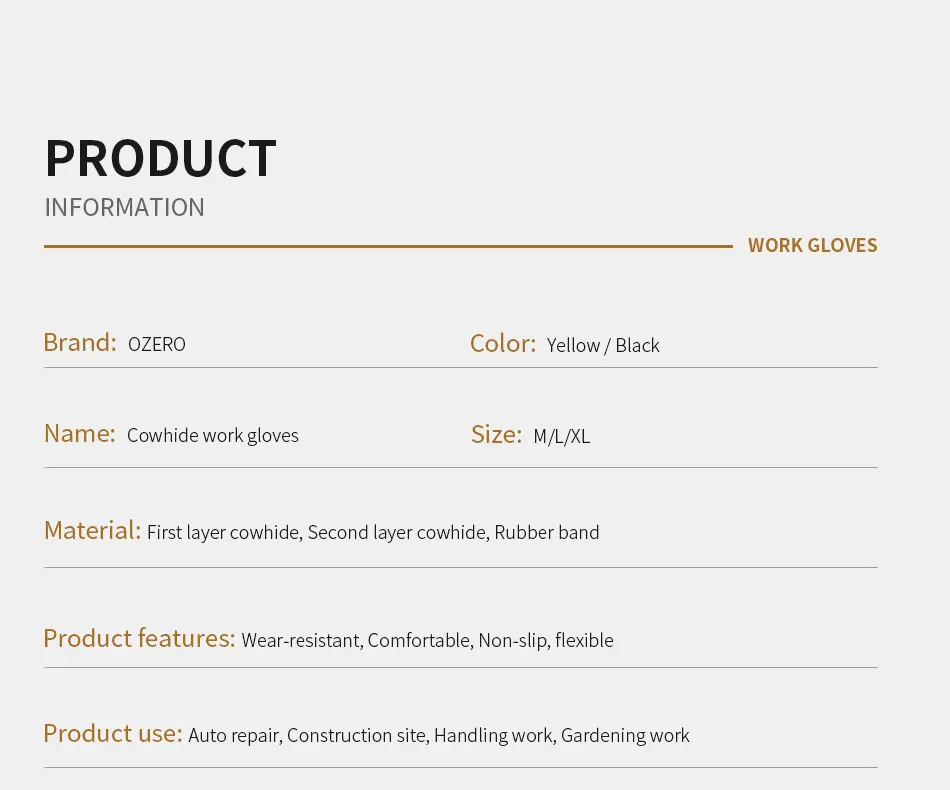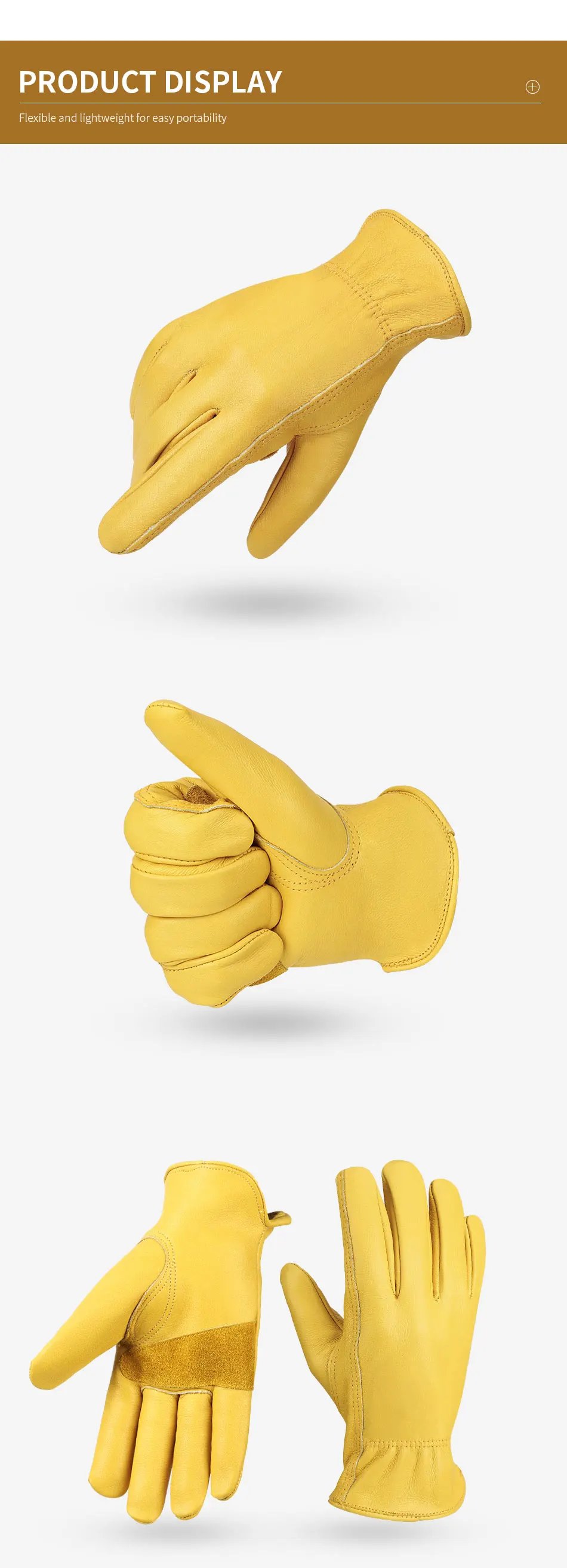 Как правило, известно, что воловья кожа-лучшая кожа для износостойких рабочих перчаток. Сделано из тщательно отобранной высококачественной коровьей кожи с толщиной толщины 1,0 мм-1,2 мм, которая не только в том случае, толстый и прочный, но мягкий и гибкий имеет среднюю степень устойчивости к воздействию масел, проколам, сопротивление разрыву и сопротивление резке.