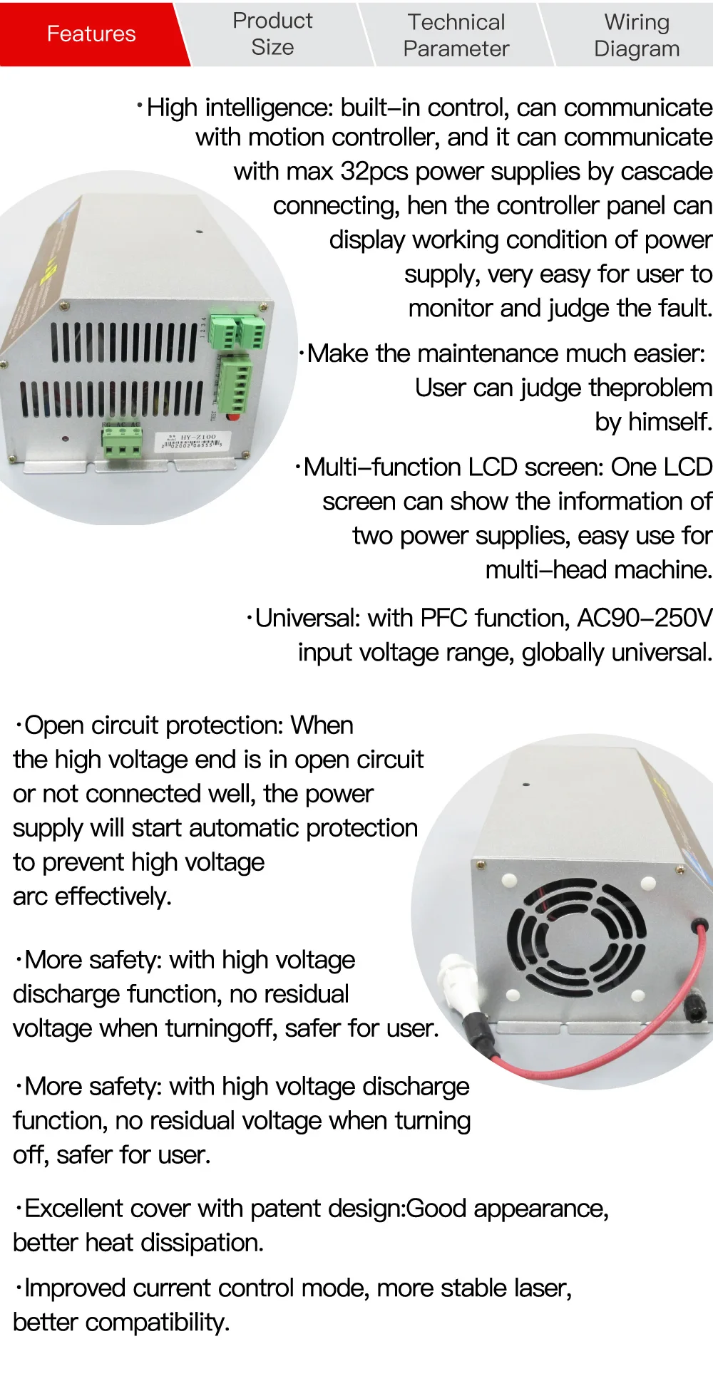 FONLAND 100-120 Вт CO2 лазерный блок питания монитор HY-Z100 серии Z AC90-250V Трубка EFR для CO2 лазерной гравировки резки