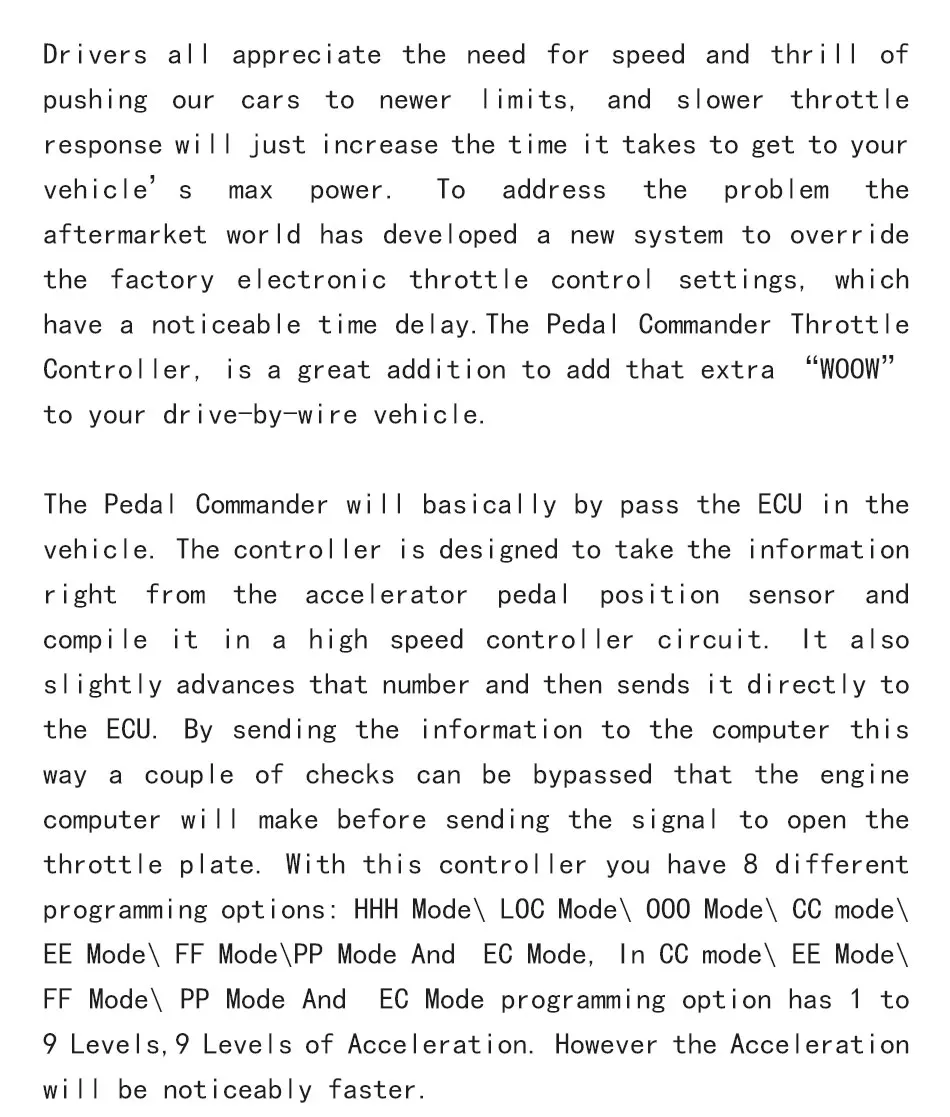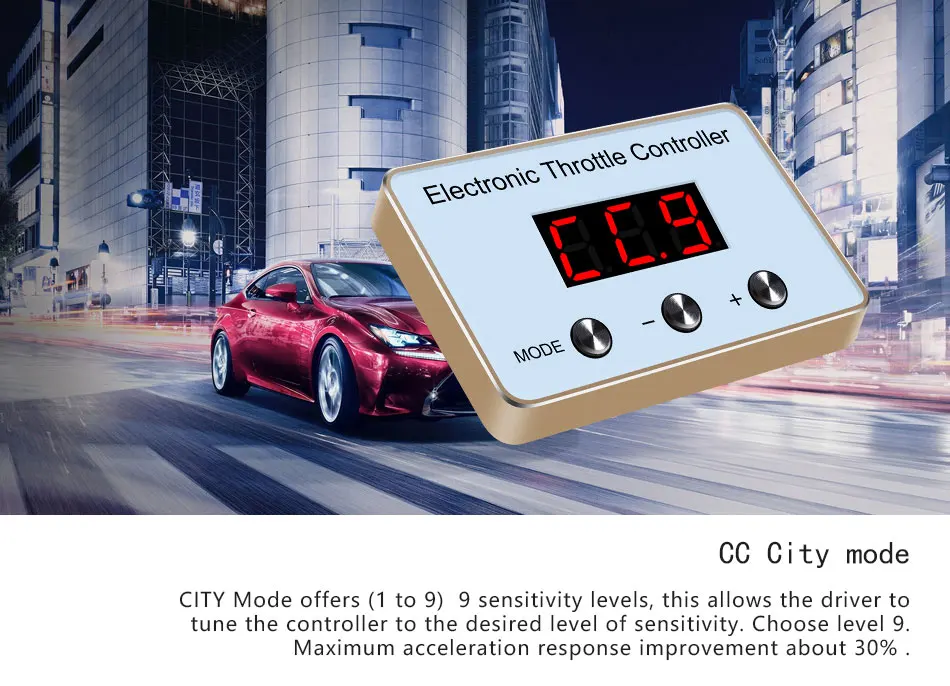 Городской режим предлагает (от 1 до 9) 9 уровней чувствительности, это позволяет драйверу настроить контроллер на желаемый уровень чувствительности. Выберите уровень 9. Максимальное улучшение отклика на ускорение около 30%.