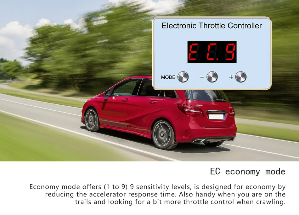 Экономичный режим предлагает (от 1 до 9) 9 уровней чувствительности, предназначен для экономии за счет уменьшения времени отклика ускорителя. Также удобно, когда вы находитесь на тропе и ищете немного больше управления дроссельной заслонкой при ползании.