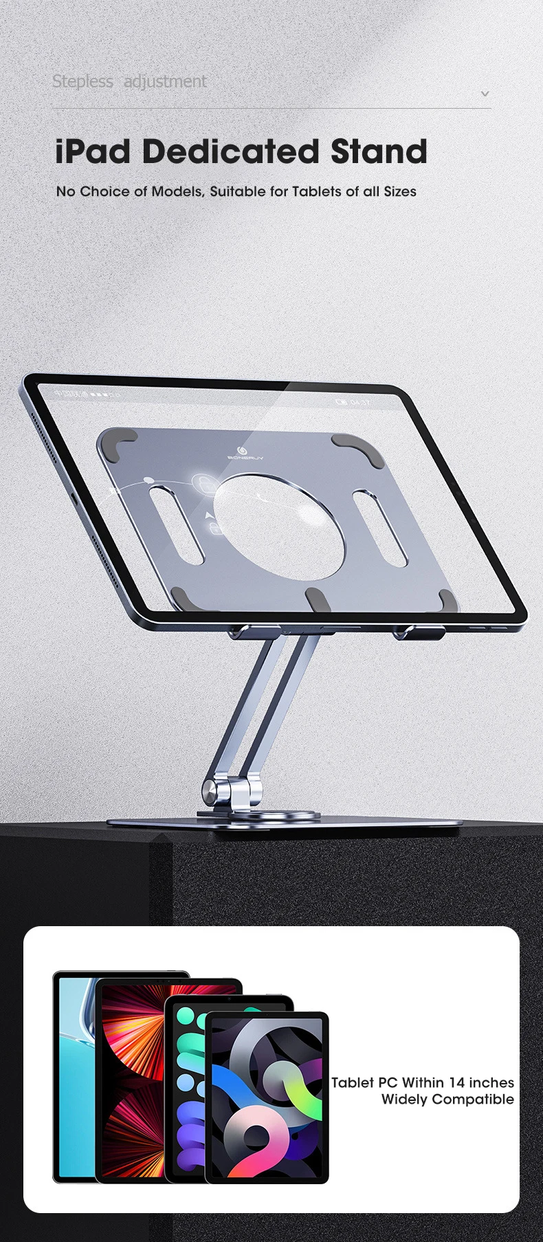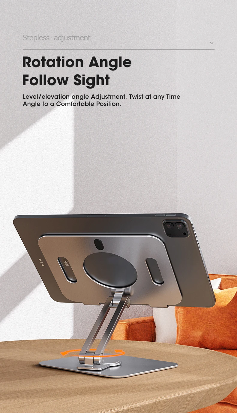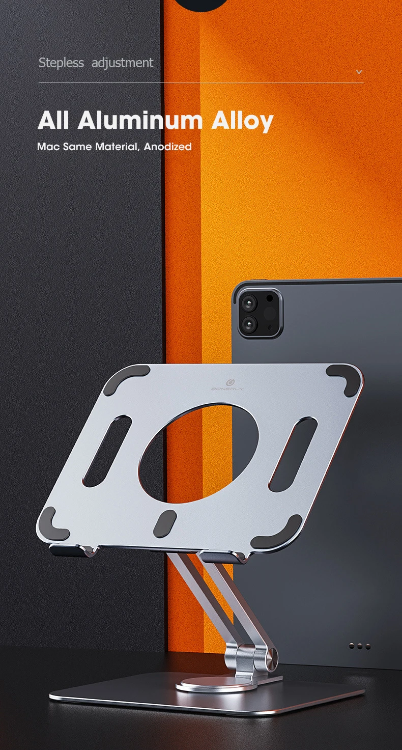 【Stable & protective】 вращающаяся Поворотная подставка для ноутбука изготовлена из утолщенного алюминиевого сплава, имеет гладкий край, который защищает вас от царапин. Обеспечивает прочную и прочную силиконовую прокладку, чтобы обеспечить плотное соединение с столом и удерживать ваш ноутбук на устойчивом месте, не беспокойтесь о том, что вы не ускользаете.