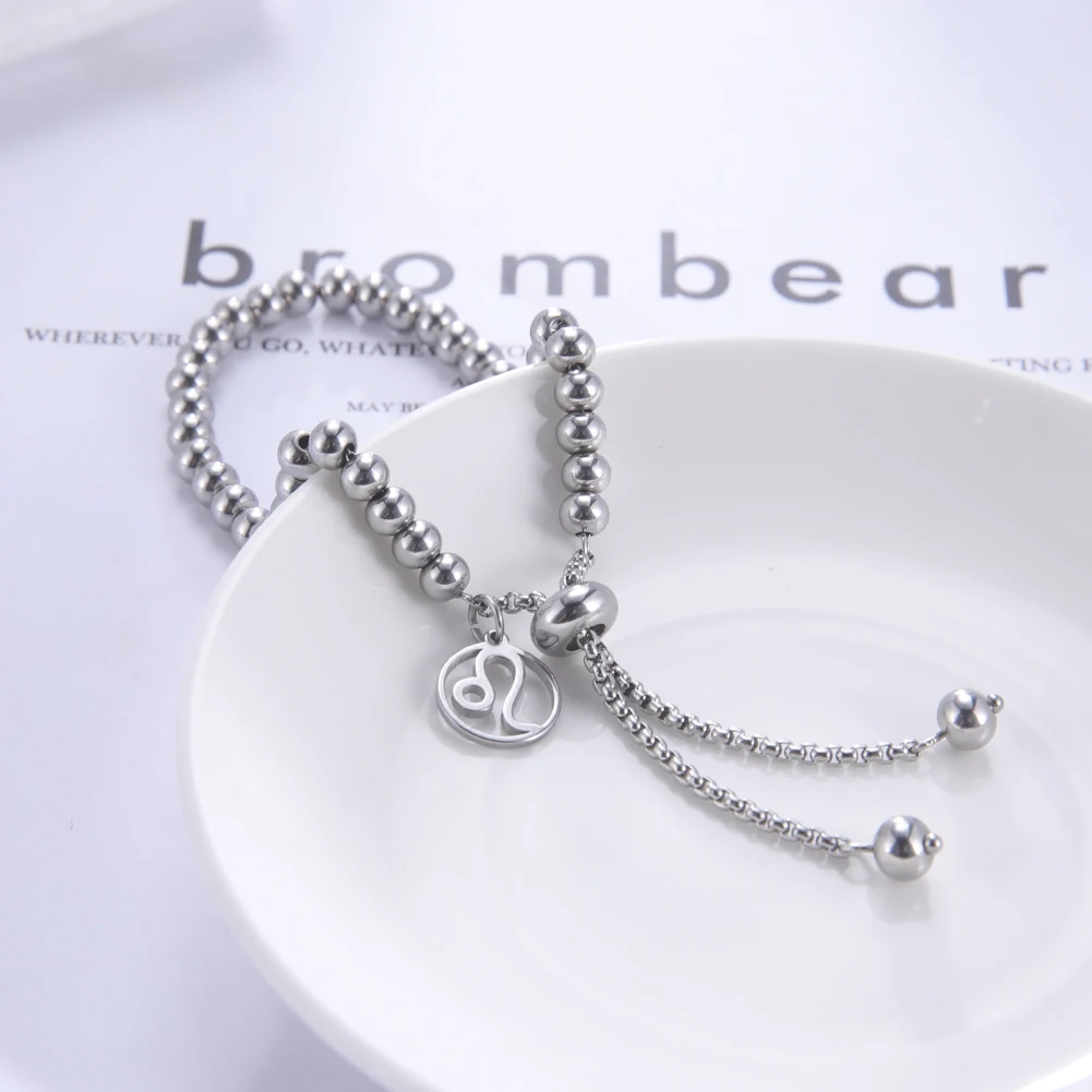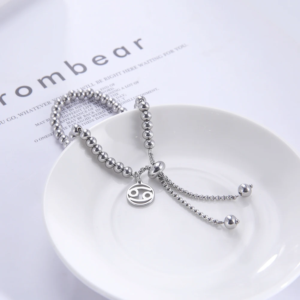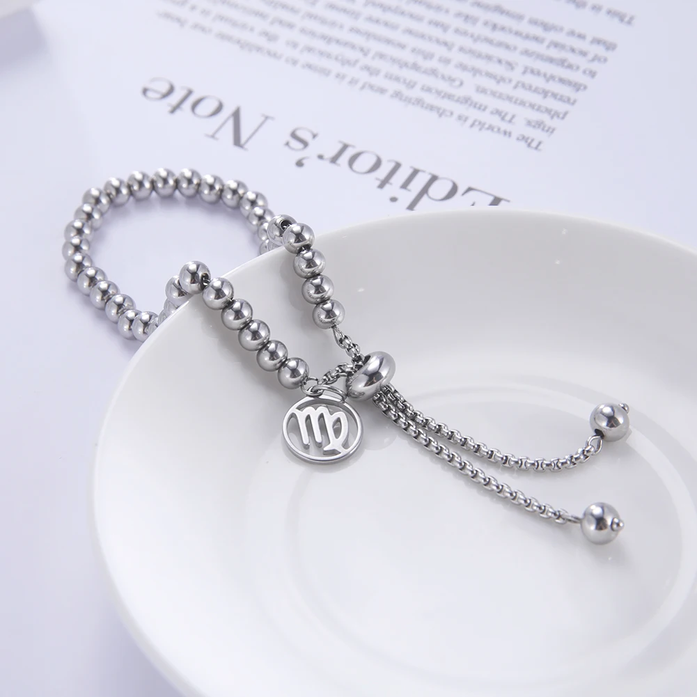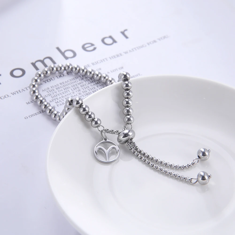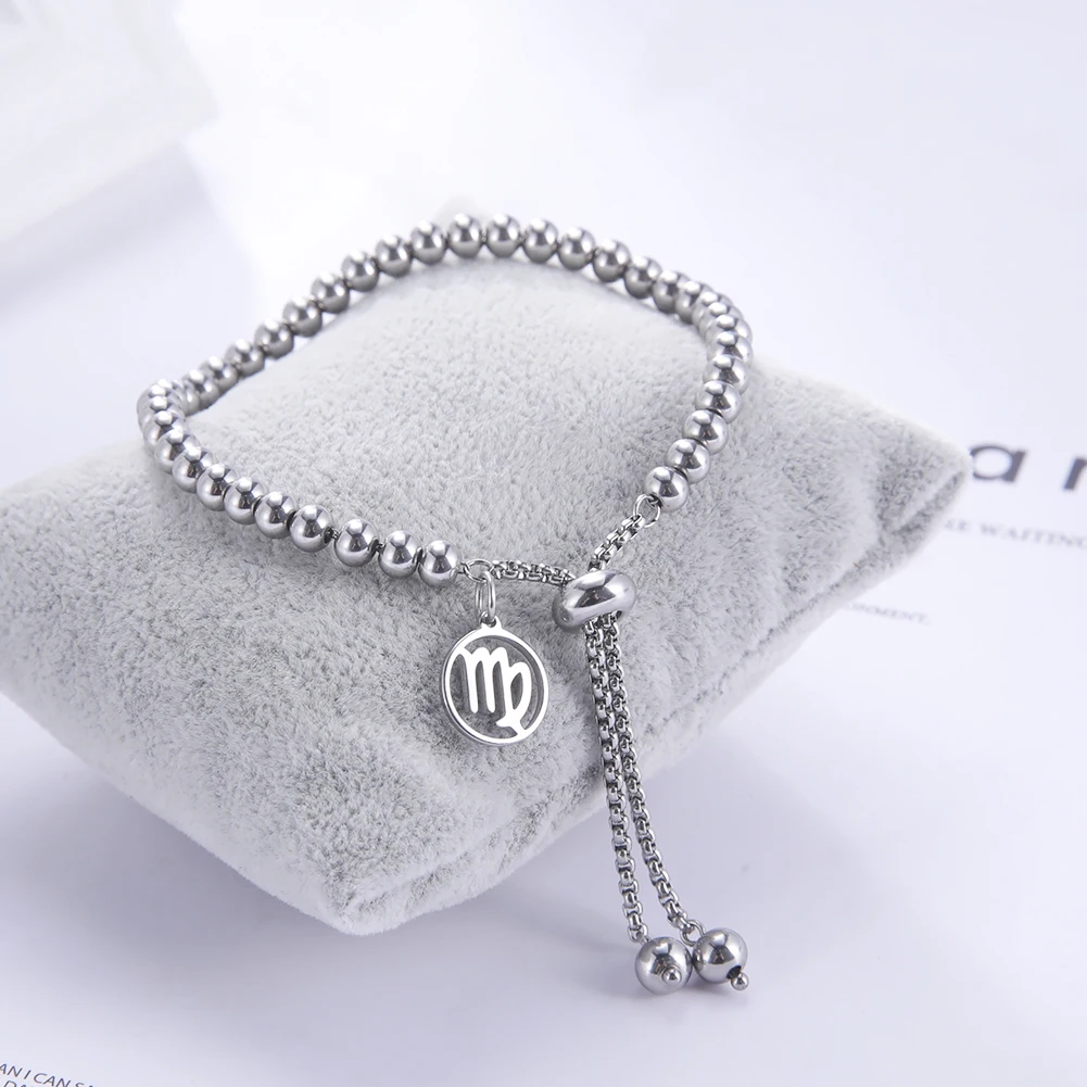 Amaxer 12 Constellation Bracelet 5mm Stainless Steel Bead Chain Bangles For Men Women Birthday Party Daily Wear Jewelry Gift