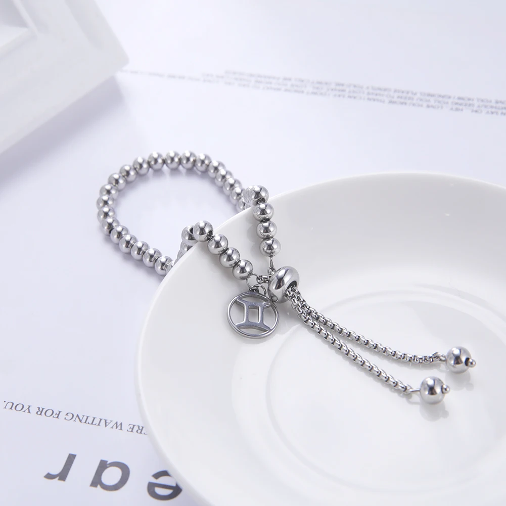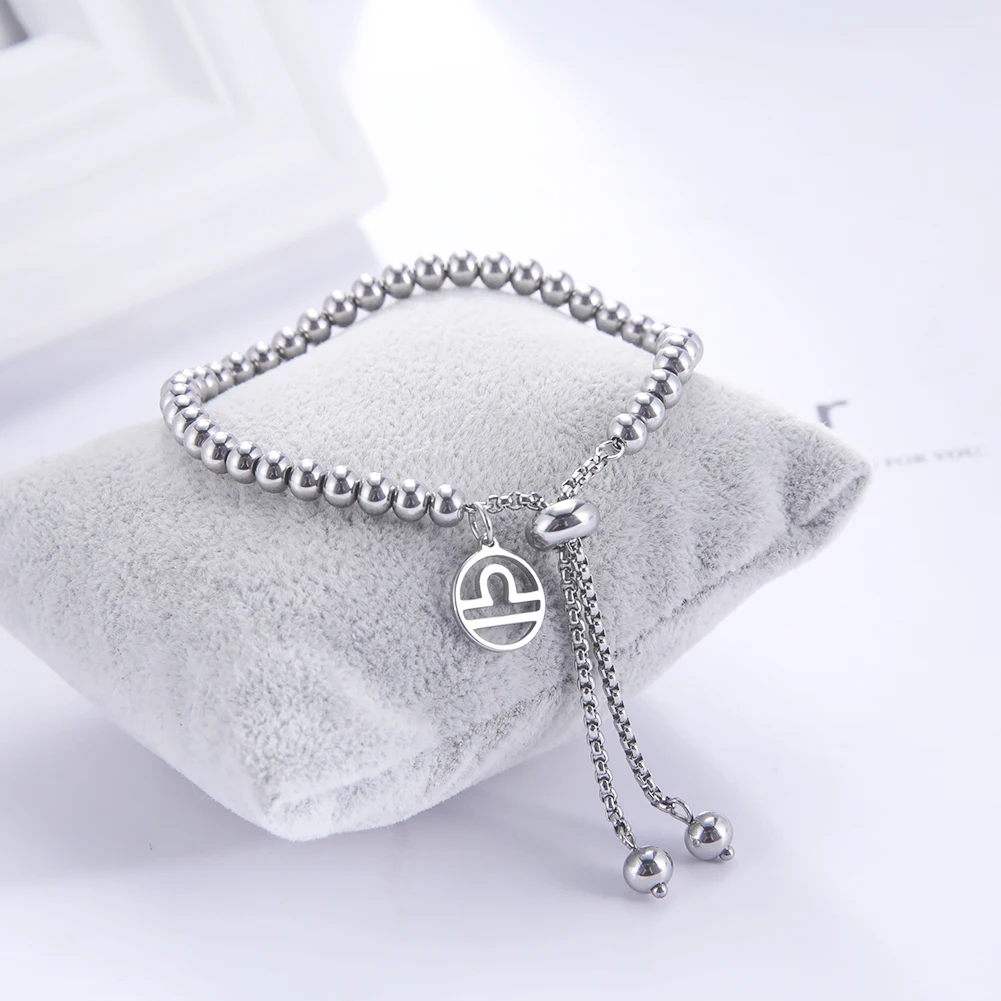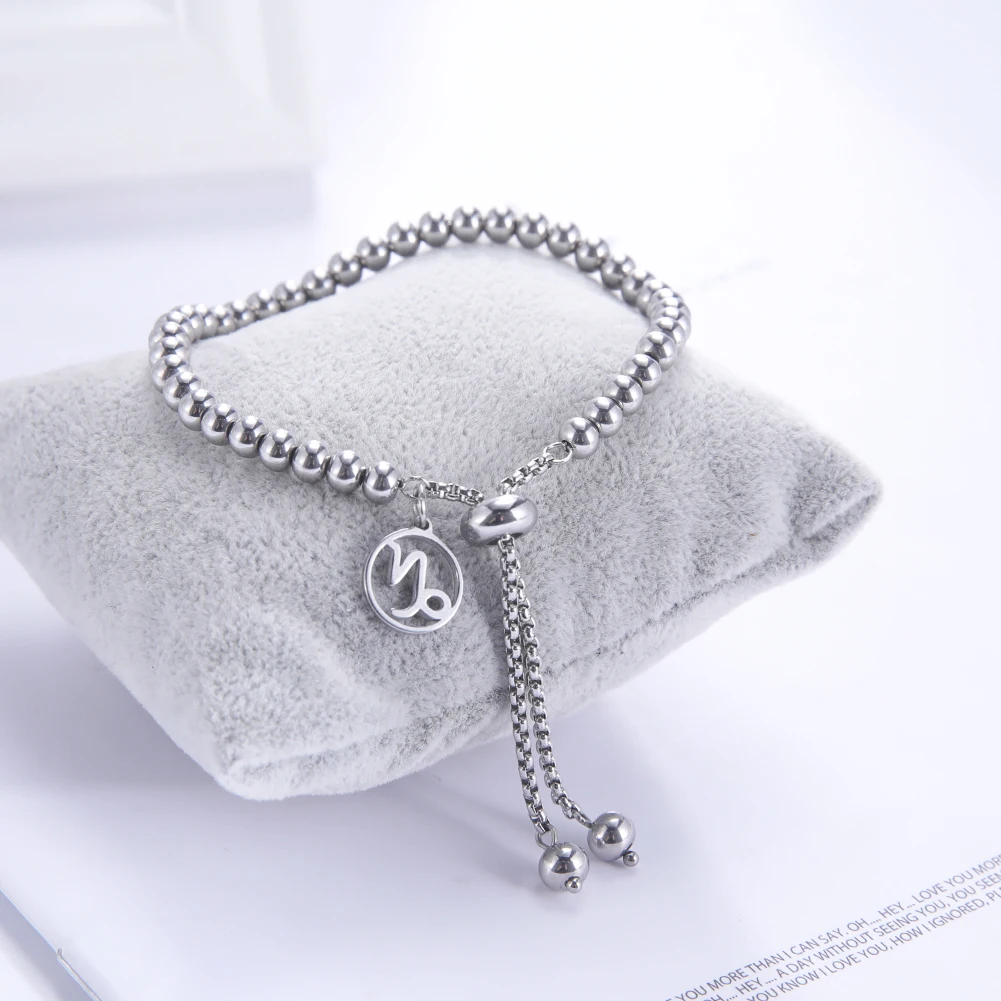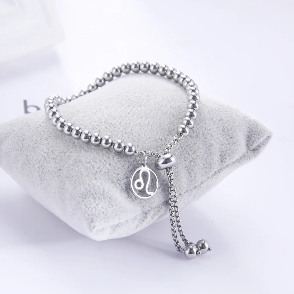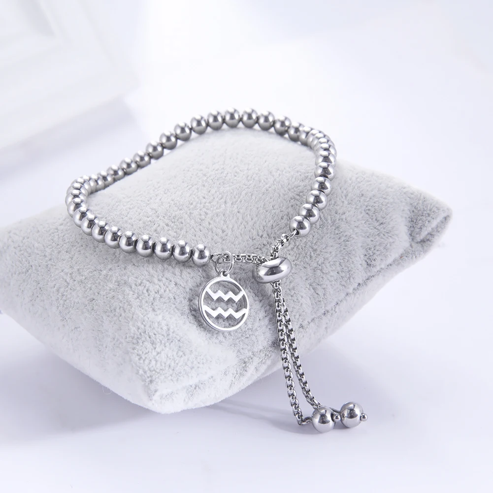 Amaxer 12 Constellation Bracelet 5mm Stainless Steel Bead Chain Bangles For Men Women Birthday Party Daily Wear Jewelry Gift