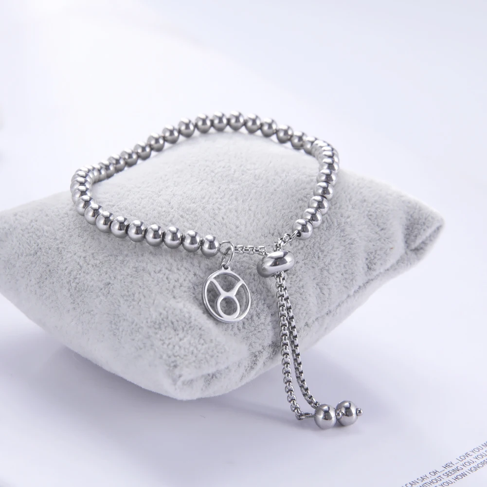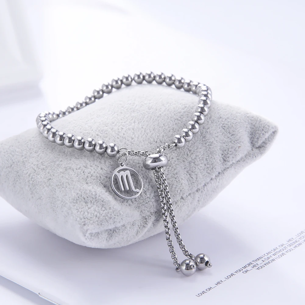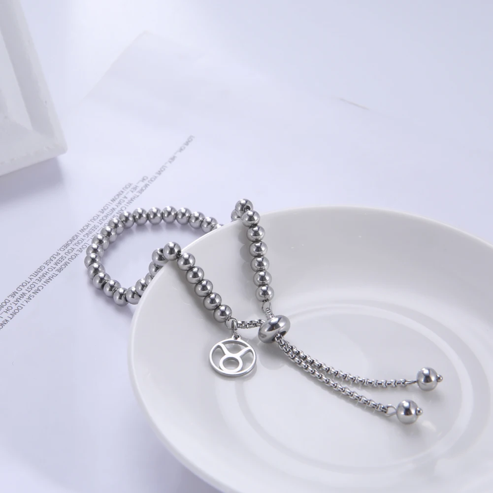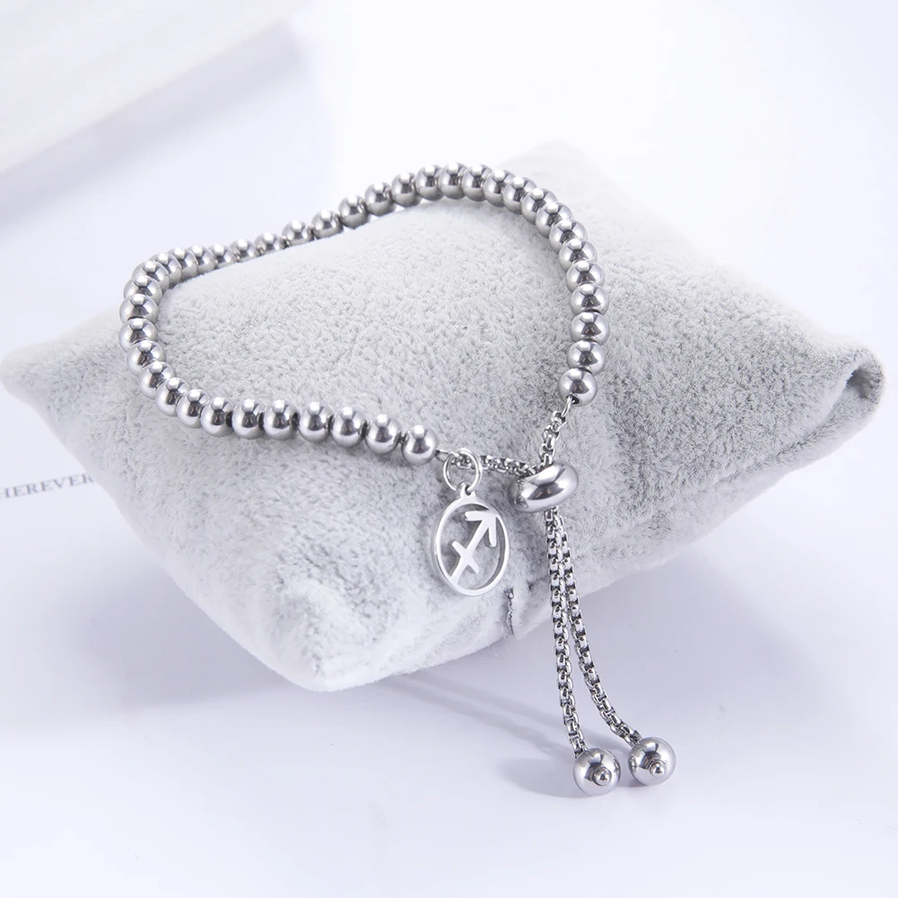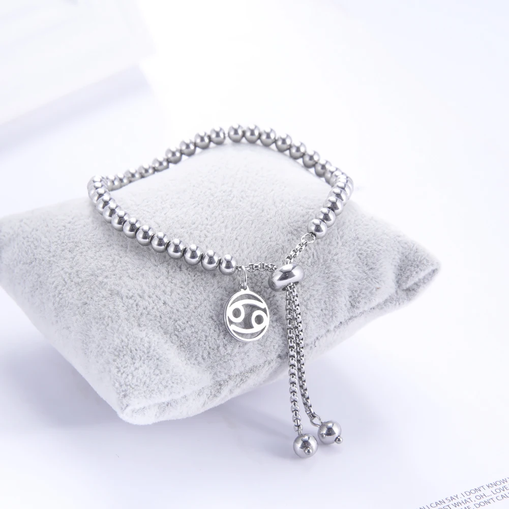 Amaxer 12 Constellation Bracelet 5mm Stainless Steel Bead Chain Bangles For Men Women Birthday Party Daily Wear Jewelry Gift
