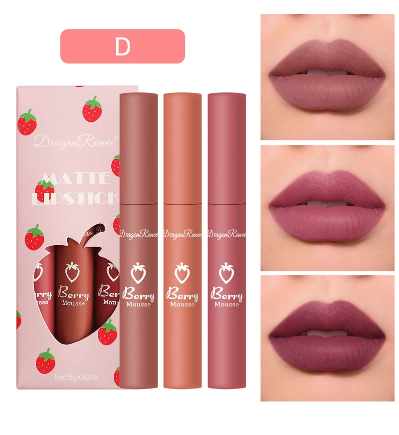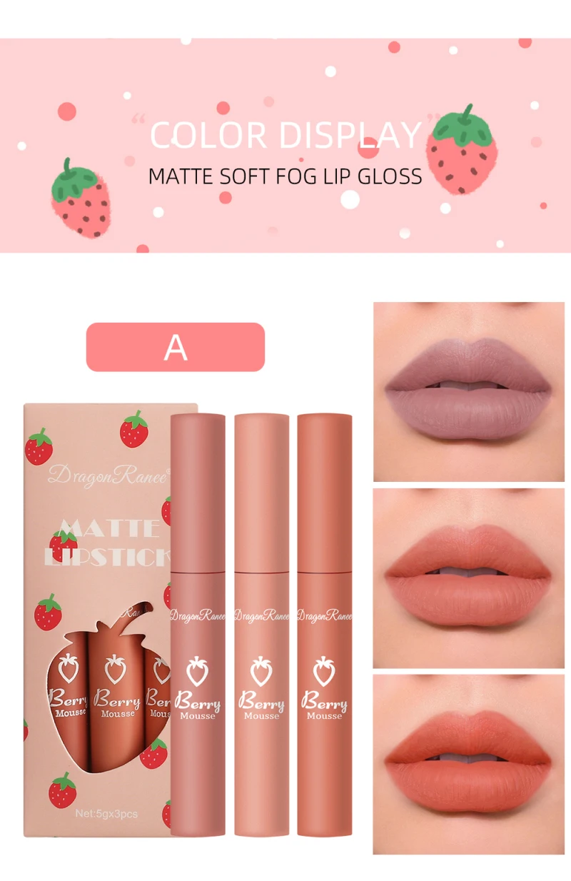 3 шт. бархатная матовая губная помада, стойкая, водостойкая, не маркирует блеск для губ, не выцветает, антипригарная чашка, бархатная глазурь для губ