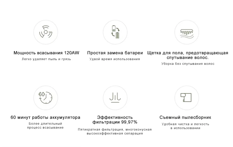 Максимальная мощность всасывания 120 Вт• Работает на цифровом двигателе, вращающемся со скоростью 100 000 об / мин;