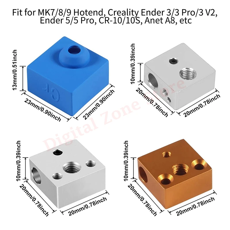 Силиконовые носки для 3D-принтера Creality Ender 3, Ender 3 Pro, Ender 3 V2, Ender 5, Ender 5 Pro, CR-10, CR-10S, CR-10 S4, CR-10 S5, CR-10 Mini, Ender-2, Anet A8 и т. Д. MK7, MK8, MK9 hotend.