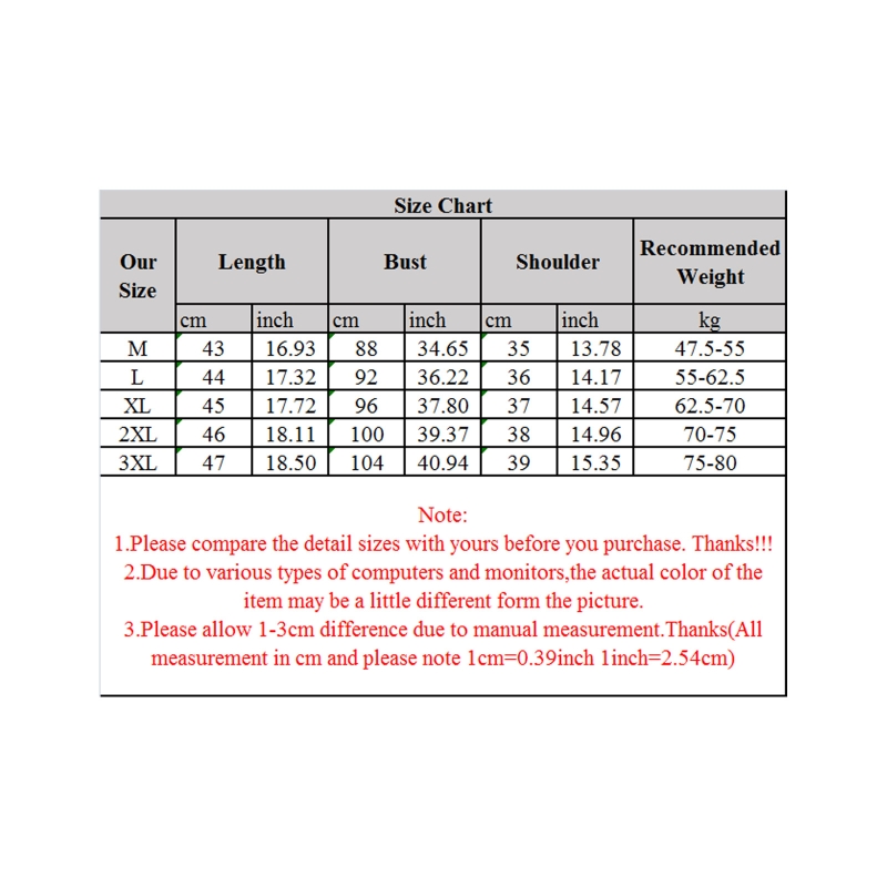 Размер: 2XL Длина: 46 см (18,11 дюйма) обхват груди: 100 см (39,37 дюйма) ширина плеч: 38 см (14,96 дюйма) рекомендуемый вес: 70-75 кг