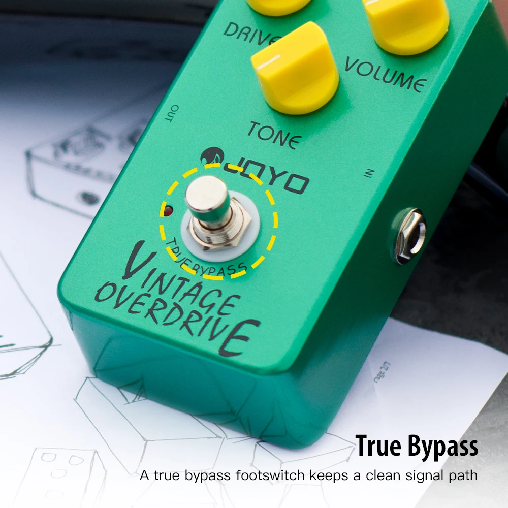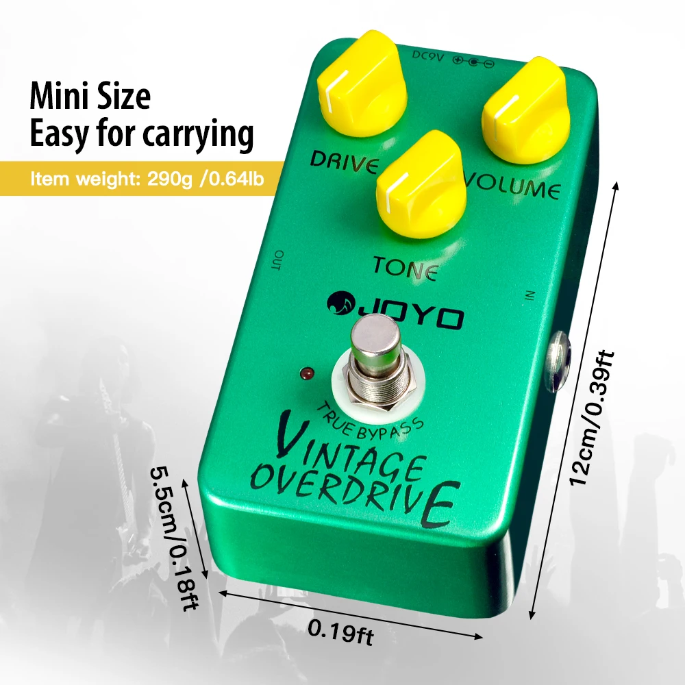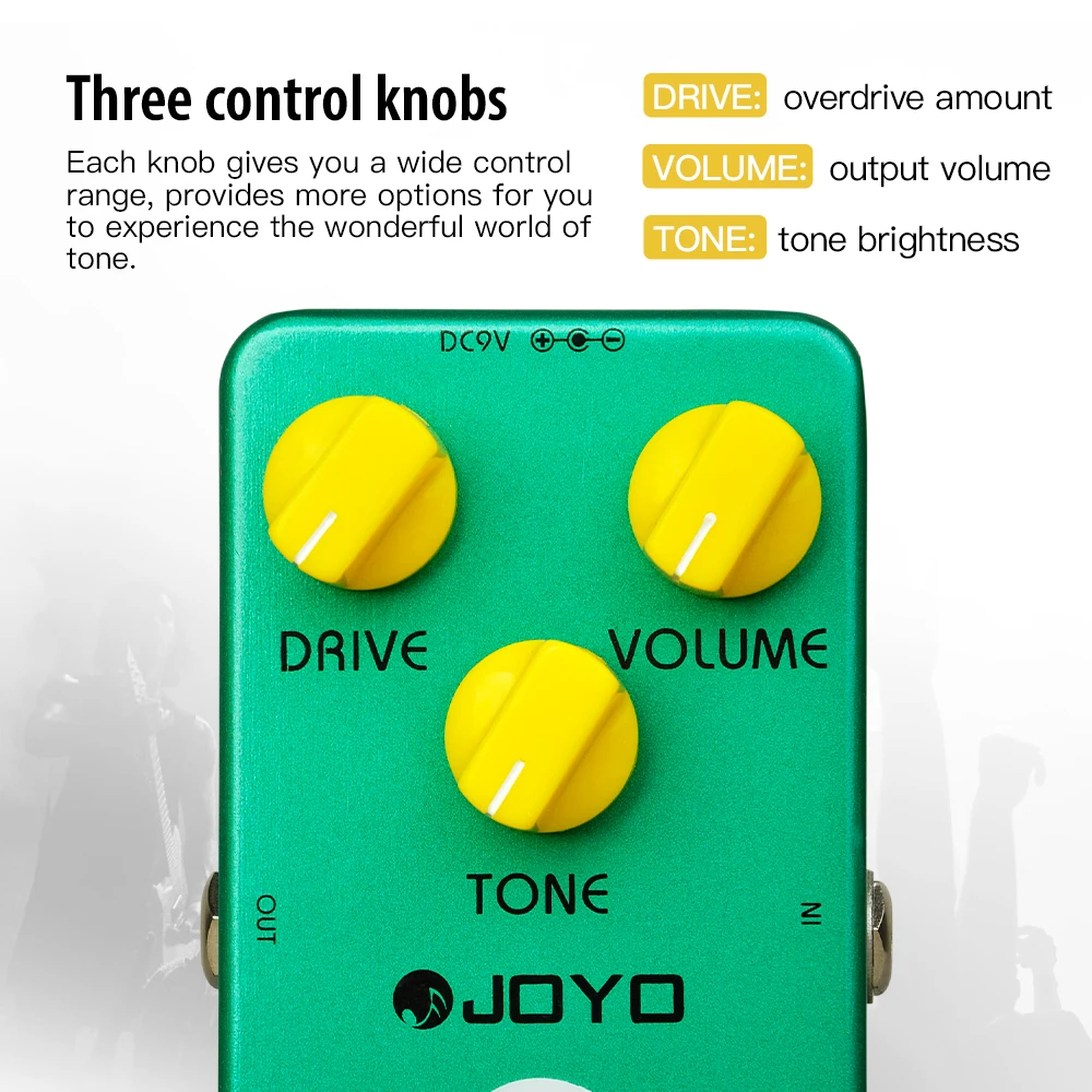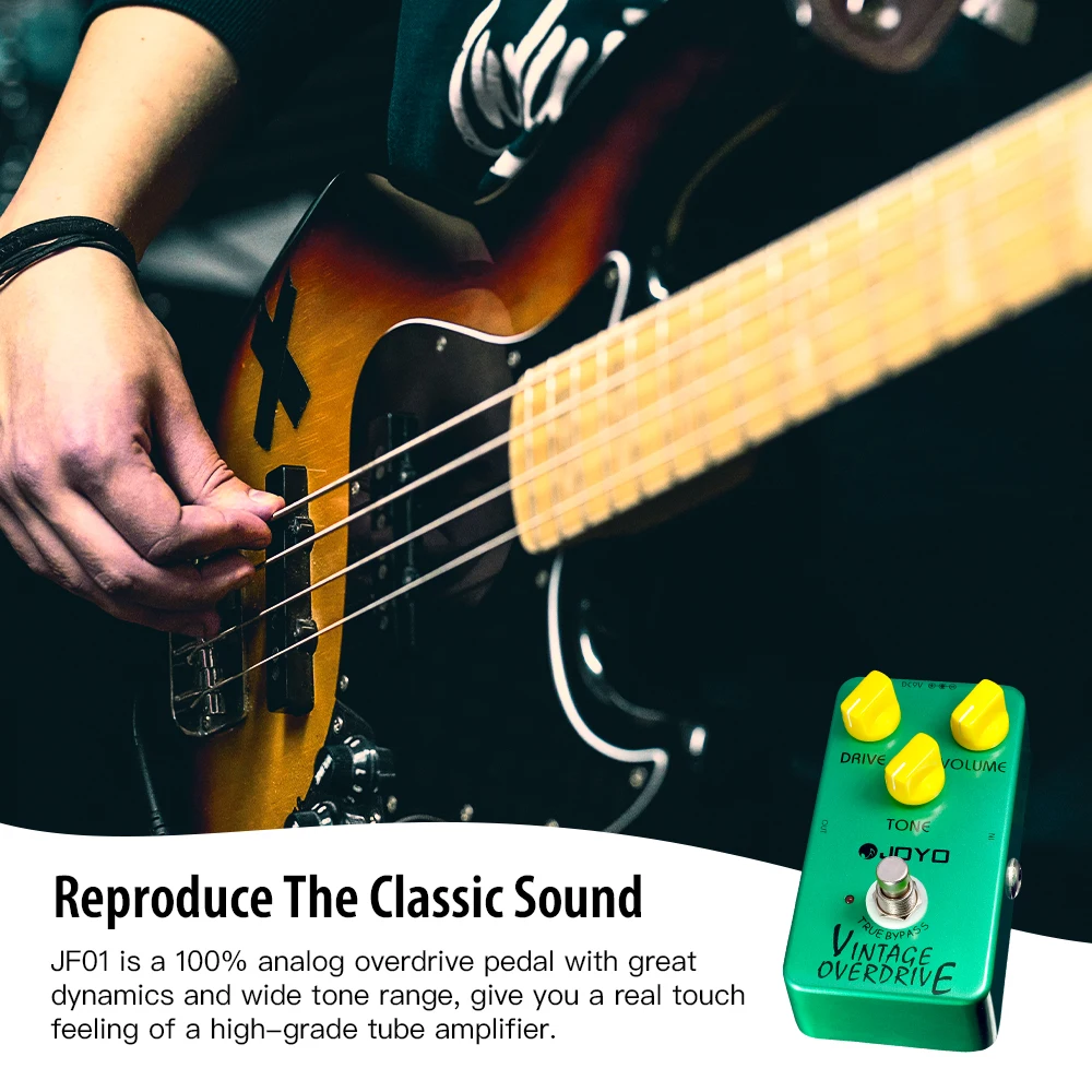 1. Винтажная педаль овердрайв JF-01 является одной из самых популярных эффектов Joyo, представляя теплые овертоны при использовании в качестве чистого увеличения громкости, жгучего тона, а также тепло классического переделанного тубуса.