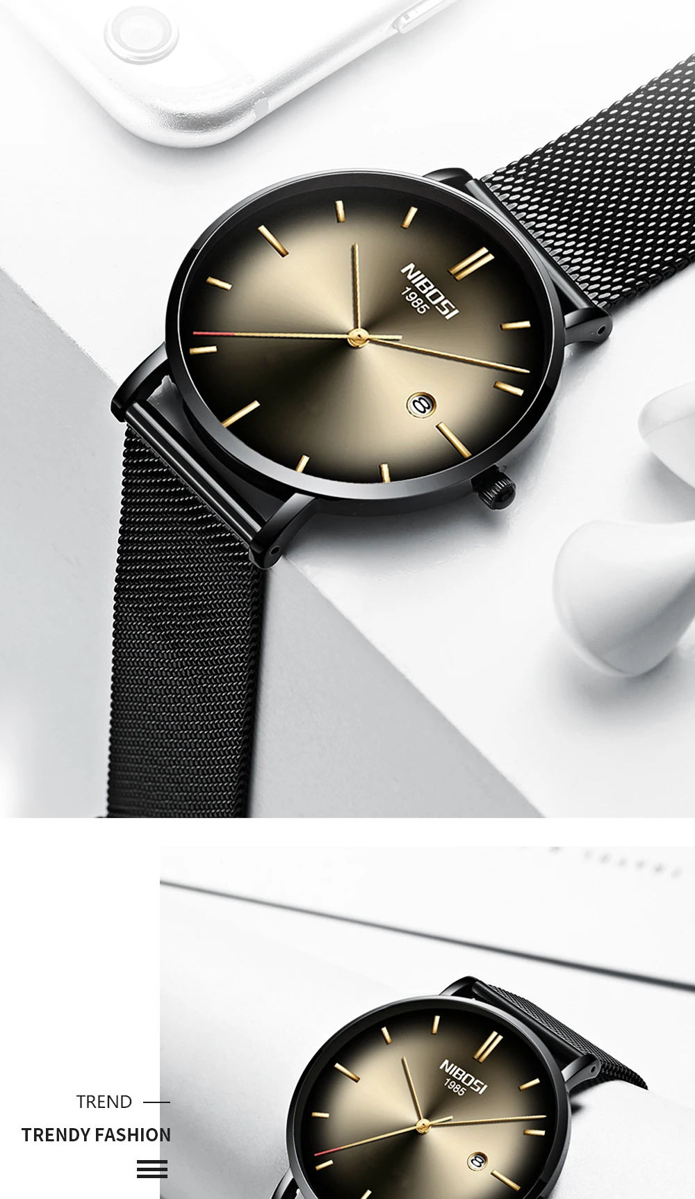 NIBOSI повседневные мужские часы Топ бренд класса люкс ультратонкие кварцевые часы для мужчин сетка сталь простой бизнес часы Relogio Masculino