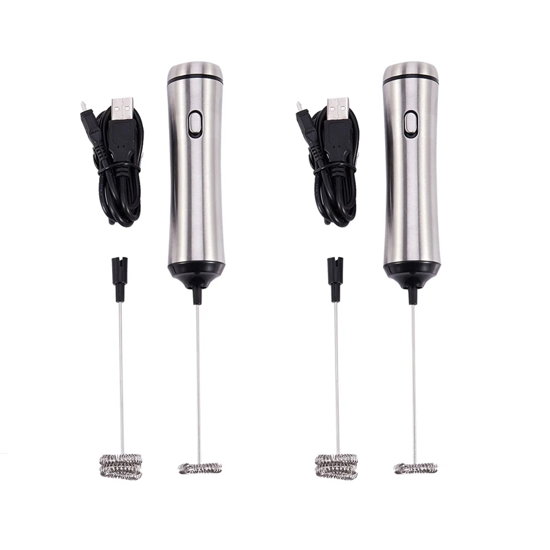 2X USB заряжаемый двойной пружинный венчик Электрический молочный пенообразователь из нержавеющей стали ручной миксер для молока с двумя скоростями