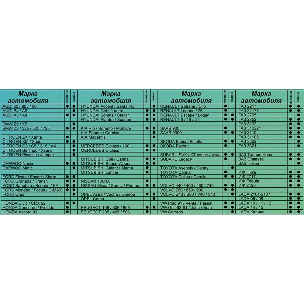 Артикул SDSBRKOMP Количество в упаковке, шт 2 Rich-контент JSON { "content": [ { "widgetName": "raShowcase", "type": "billboard", "blocks": [ { "img": { "src": "//ic.wampi.ru/2021/05/07/bryzg15.jpg", "srcMobile": "//ic.wampi.ru/2021/05/07/bryzg15.jpg", "width": 1472, "height": 736, "widthMobile": 1472, "heightMobile": 736 }, "title": "Зачем нужны брызговики", "text": { "content": [ "Брызговик, а правильнее, фартук колесной арки – это дополнительный автомобильный аксессуар, выполняющий несколько важных функций. Устанавливается брызговик на заднюю часть колесного крыла.", "В дождливую погоду брызговики защищают дно и всю нижнюю часть автомобиля от попадания брызг и дорожной грязи. В зимнее время брызговики защищают дно автомобиля от реагентов, которыми обрабатывают дороги в больших городах. Форма брызговиков такова, что изменяется аэродинамика в районе колесных арок, и брызги и грязь из-под колес не оседают на нижней части корпуса и боковых дверях автомобиля. Мало того, брызговики защищают лакокрасочное покрытие нижней части автомобиля от царапин и сколов, которые могут появиться от мелкой щебенки, вылетающей из-под колес вашего же автомобиля. Автомобили, долгое время вынужденные по каким либо причинам эксплуатироваться без брызговиков по плохим дорогам, определяются сразу – видны царапины на нижней части корпуса и боковых дверей, а в дождливую погоду такие автомобили отличаются более грязным видом всей нижней части автомобиля. ", "" ] } }, { "img": { "src": "//ic.wampi.ru/2021/05/07/00-9-1024x682.jpg", "srcMobile": "//ic.wampi.ru/2021/05/07/00-9-1024x682.jpg" }, "title": "Что дает установка брызговиков на ваш автомобиль?", "text": { "content": [ "- Автомобиль меньше пачкается, особенно в дождливую погоду, меньше страдает от реагентов в зимнюю погоду.", "- Лакокрасочное покрытие нижней части корпуса автомобиля защищается от царапин.", "- Меньше проблем и стычек на дорогах – не летит грязь и брызги из–под колес вашего авто на едущий следом автомобиль.", "- Инспектору ГИБДД не к чему придраться – и деньги и нервы Ваши останутся целыми.", "" ] } } ] }, { "widgetName": "raShowcase", "type": "chess", "blocks": [ { "img": { "src": "//nowatermark.ozone.ru/s3/multimedia-0/6038426472.jpg", "srcMobile": "//nowatermark.ozone.ru/s3/multimedia-0/6038426472.jpg", "width": 1066, "height": 572, "widthMobile": 1066, "heightMobile": 572 }, "title": "Брызговики SDS: ", "text": { "content": [ "- Просты в обслуживании, легко помыть, заменить.", "", "- Гибкие, при наезде на препятствие или бордюр не сломаются.", "", "- Низкая цена." ] } }, { "img": { "src": "//ic.wampi.ru/2021/05/07/BRYZGOVIKI-UNIVERSALNYE-LYKS-2-ST.-RAZMER-L.jpg", "srcMobile": "//ic.wampi.ru/2021/05/07/BRYZGOVIKI-UNIVERSALNYE-LYKS-2-ST.-RAZMER-L.jpg", "width": 1063, "height": 574, "widthMobile": 1063, "heightMobile": 574 }, "title": "Пошаговый порядок монтажа брызговиков:", "text": { "content": [ "- Перво-наперво необходимо вывернуть автомобильные колеса в удобную сторону, чтобы обеспечить комфортную работу. При большом желании можно даже снять колесо, но это может понадобиться лишь при установке индивидуальных образцов и то не для каждой марки машины;", "- Демонтировать старый, отслуживший свой срок, фартук;", "- Зачистить место для крепежа;", "-Приложить устанавливаемый брызговик к запланированному месту, отметить место крепежа карандашом;", "-Высверлить с помощью дрели отверстия для вставки саморезов;", "-Закрепить фартук посредством саморезов.", "", "" ] } } ] }, { "widgetName": "raTextBlock", "text": { "theme": "disclaimer", "content": [ "", "" ] } }, { "widgetName": "raTable", "title": "", "table": { "header": [ ], "body": [ [ ], [ ], [ ], [ ] ] } } ], "version": 0.2 } Аннотация Состоит из 2 универсальных брызговиков, изготовленных из высококачественного полиуретана.Изделия эффективно защищают кузов автомобиля от грязи и воды, формируют аэродинамический поток воздуха, создаваемый п