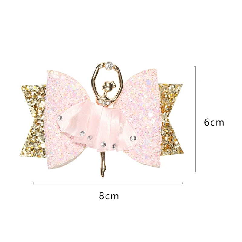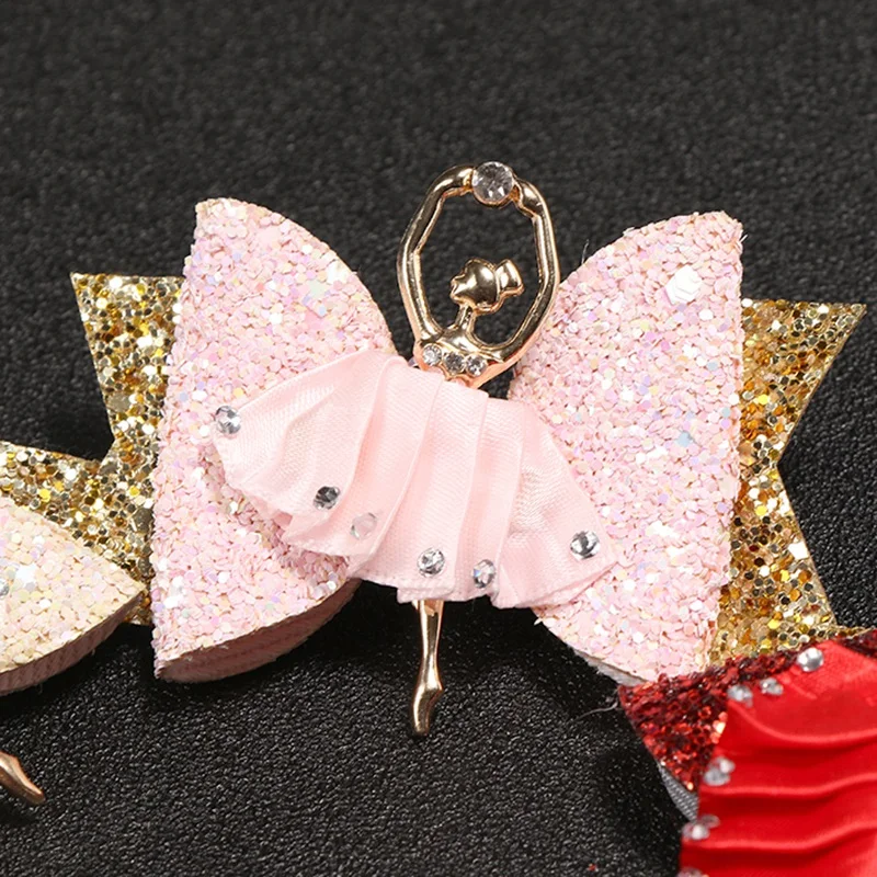 Стразы, балетная девочка, Бант Шпилька с клипсами, блестящие кожаные заколки для волос, милые вечерние головные уборы с героями мультфильмов, танцевальный головной убор для детей