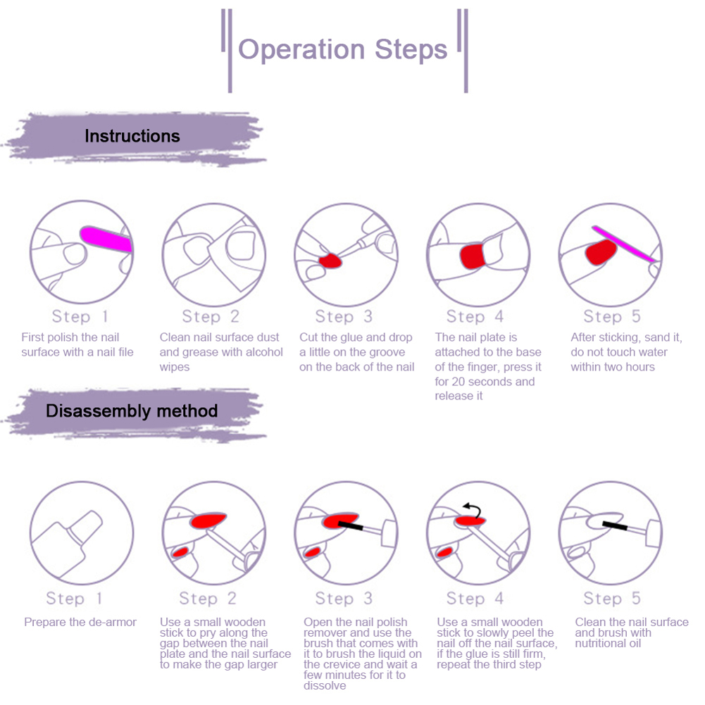 1. Ногти на ногтях изготовлены из высококачественных материалов, Которые являются экологически безопасными материалами, безопасными и безвкусными, безвредными Для ваших ногтей или тела, что делает ногти прочными и естественными.