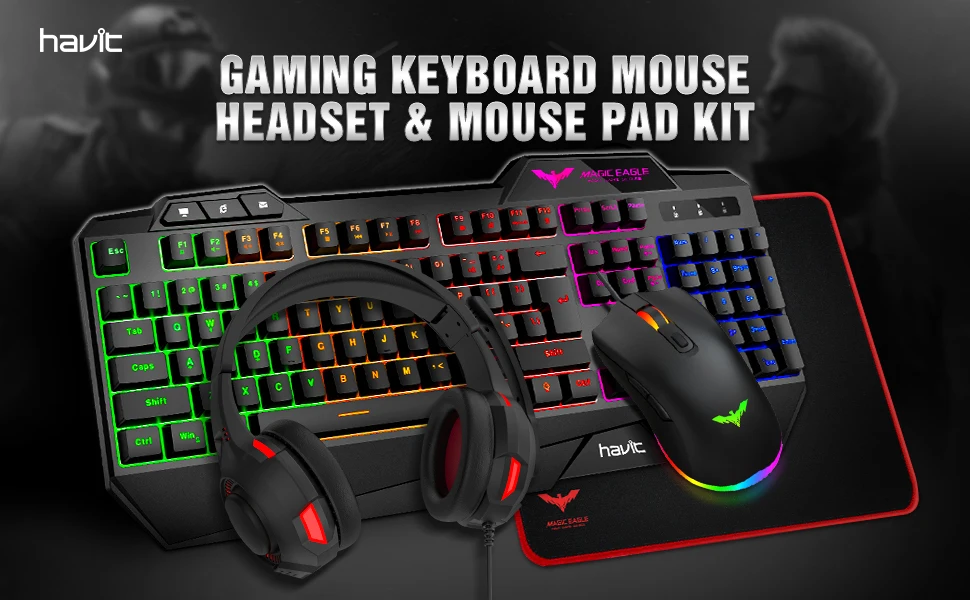 Mavit KB392L RGB Проводная игровая клавиатура 104 клавиш 4800 точек/дюйм мышь и коврик для мыши 3,5 мм разъем гарнитура с микрофоном комплект для ПК компьютер ноутбук
