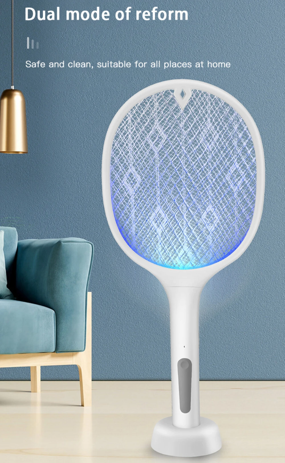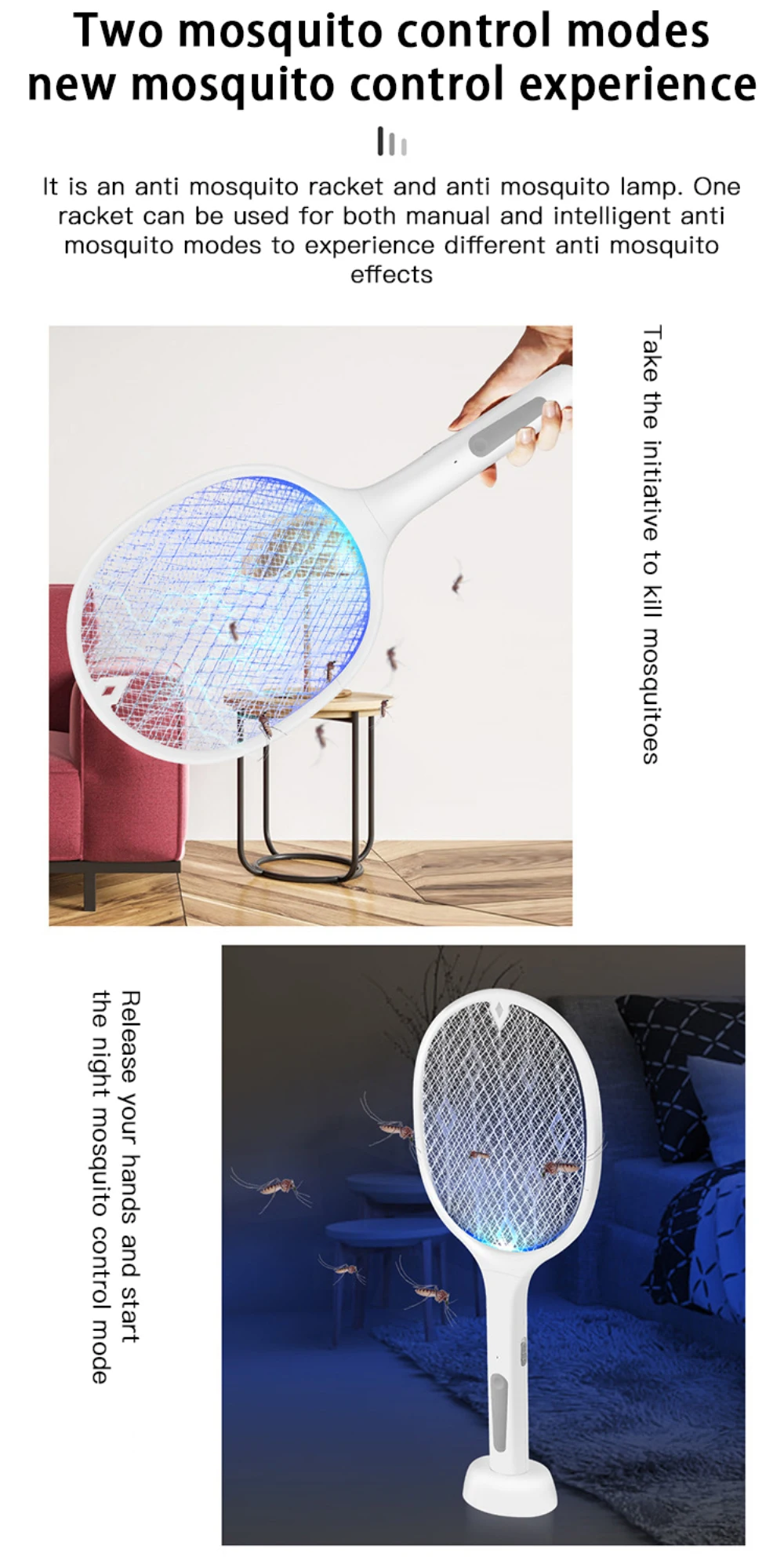 【Электрическая лампа и ракетка 2 в 1 】 последняя электрическая ловушка для комаров имеет 2 режима уничтожения комаров. Настройте электрическая ловушка для комаров на ON1, вы можете вручную использовать комаров в любом уголке. Поверните выключатель питания Электрическая ловушка для комаров в положение ON2, затем поместите его в опору для работы в качестве электрического насекомого-убийцы. Как только комаров и других летающих насекомых привлекут фиолетовый светильник и прикоснитесь к электрической ваттере, она будет немедленно убита.