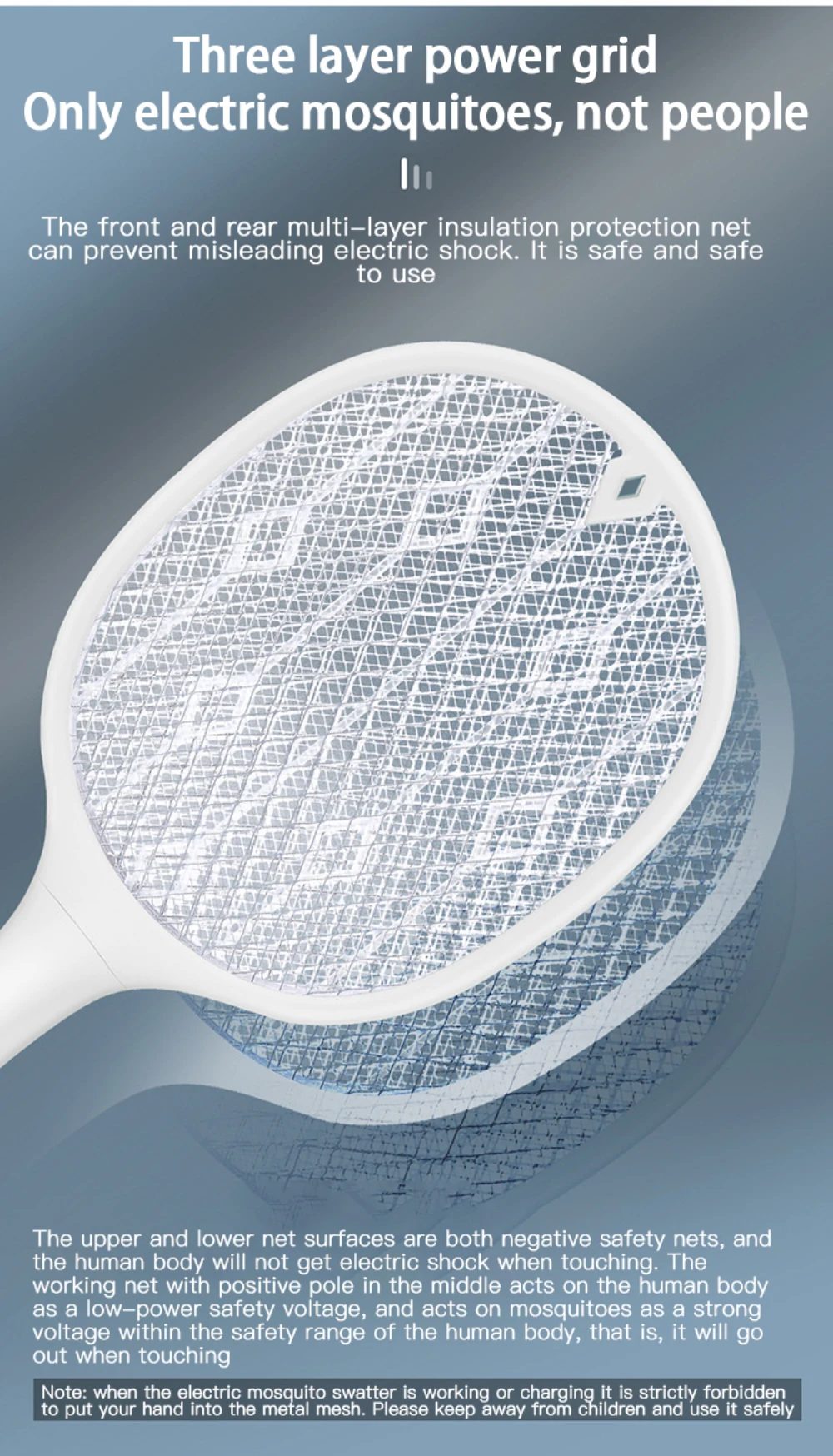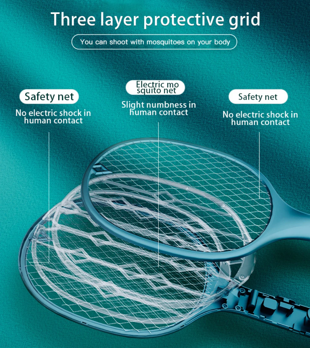 【Безопасно для прикосновения 】 внешняя никелированная сетка из нержавеющей стали и внутренний слой алюминиевой сетки не протекают электричество и устойчивы к деформации. Три слоя сетки смещены и разрезаны, так что комаров некуда ускользнуть после прикосновения к площади сетки. Безопаснее для вас и вашей семьи.