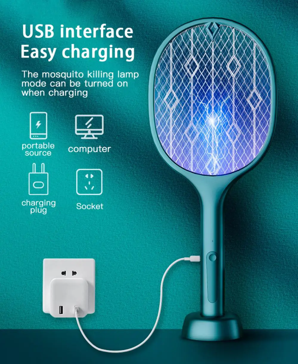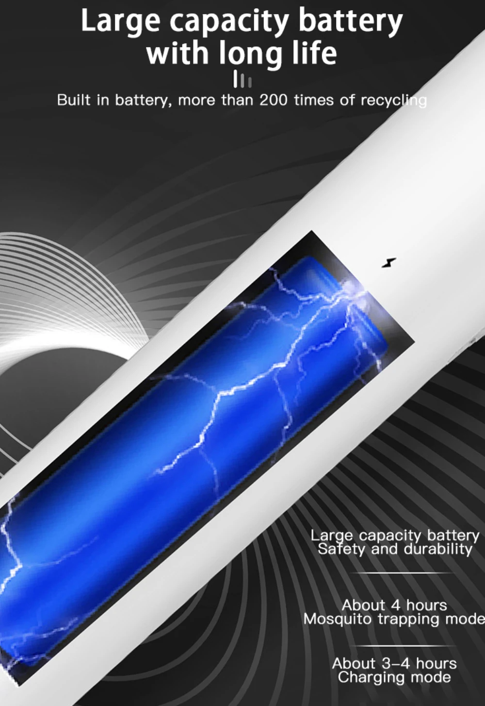 【USB Charge】Featuring супер-яркий Встроенный светодиодный, вы можете использовать его даже в ночное время за 24 часа для защиты. Это электрическое устройство fly swatter оснащено встроенным литиевым аккумулятором 1200 мАч, подключением и зарядкой. Не меняйте аккумулятор. Избегайте загрязнения окружающей среды одноразовыми батареями.