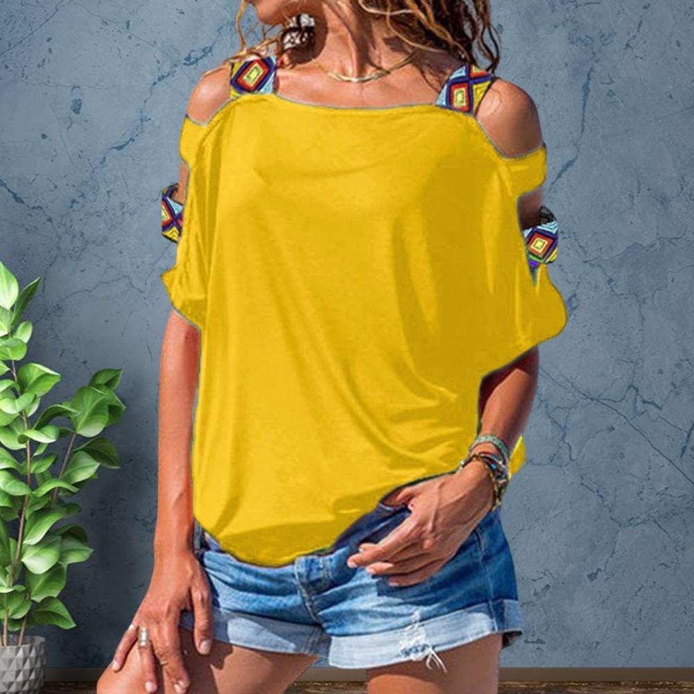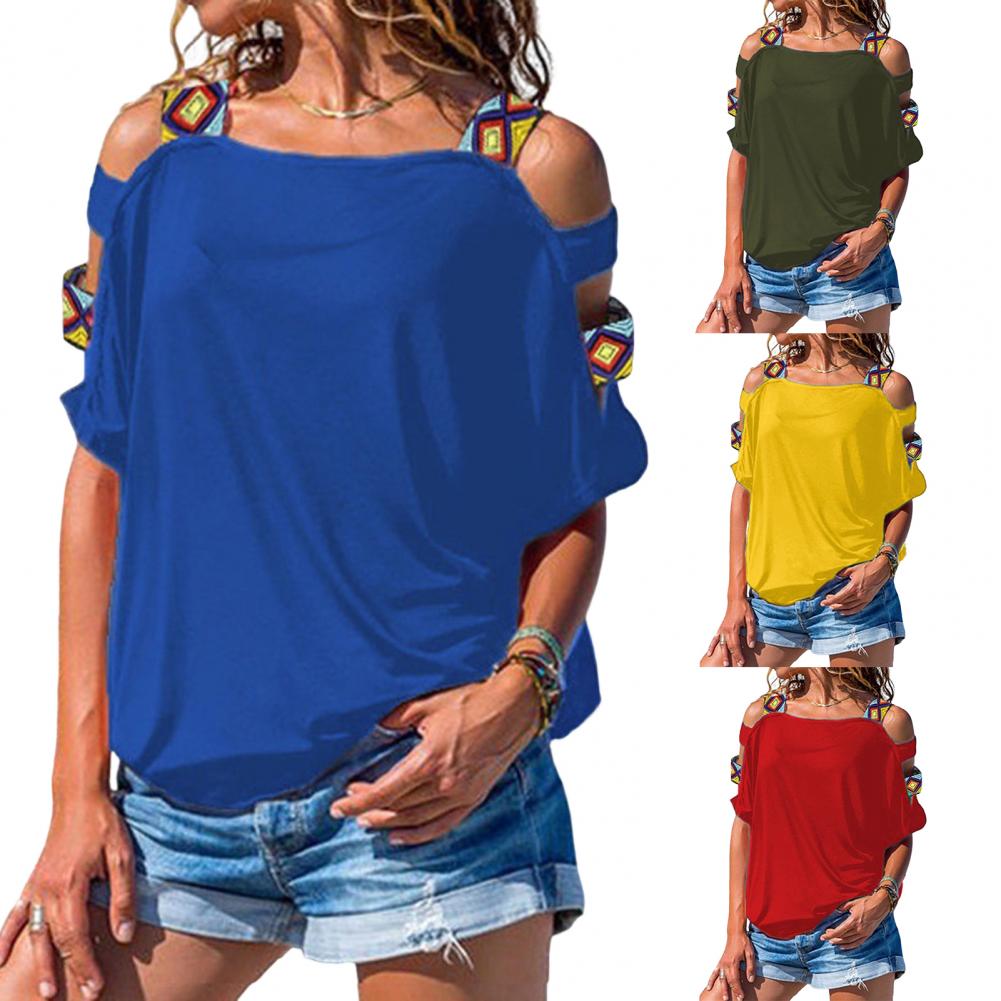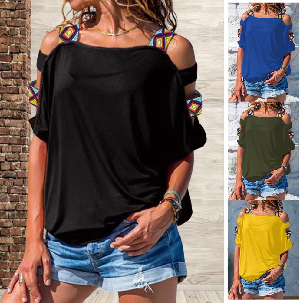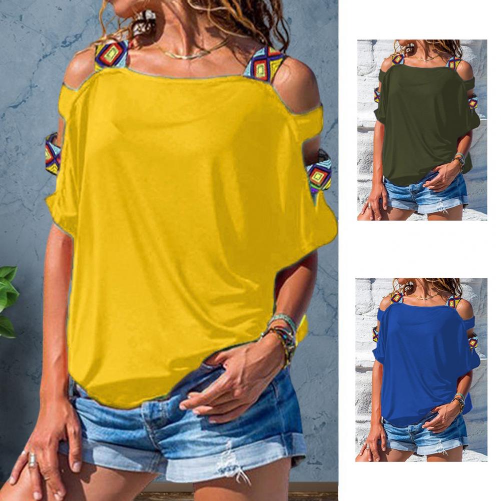 Однотонная тонкая дышащая женская футболка с коротким рукавом и открытыми плечами, женская одежда