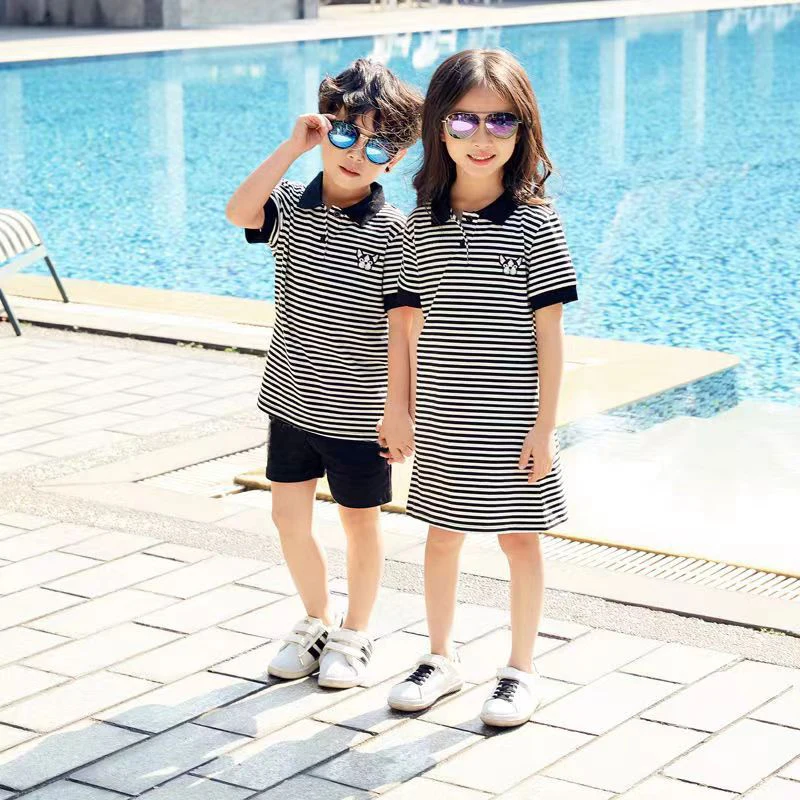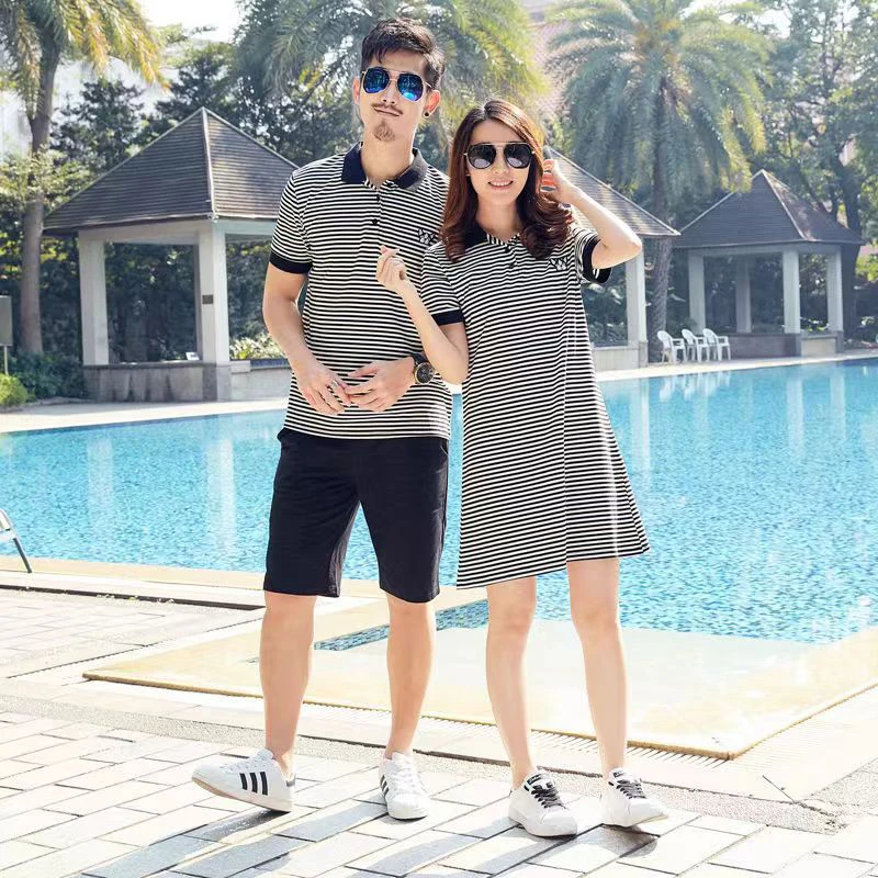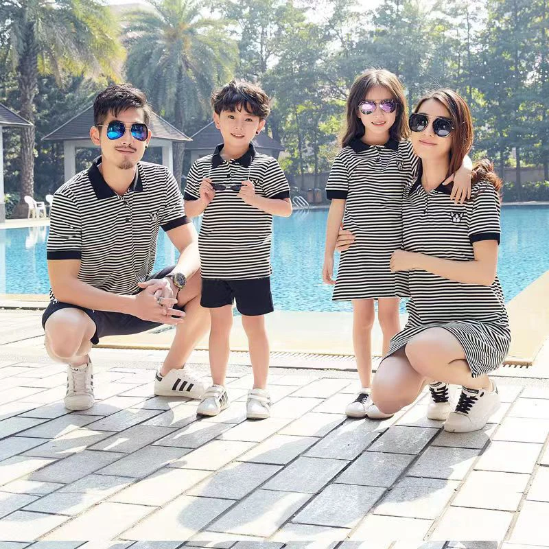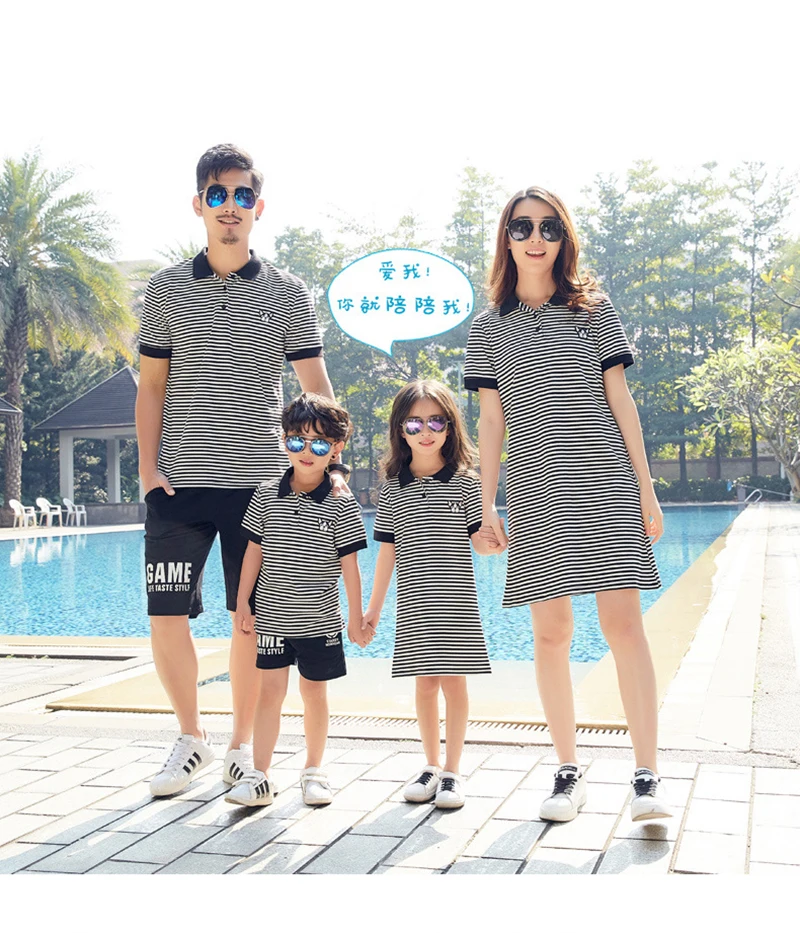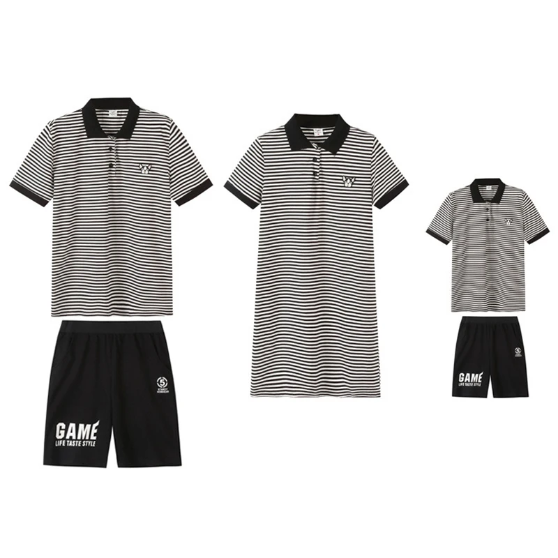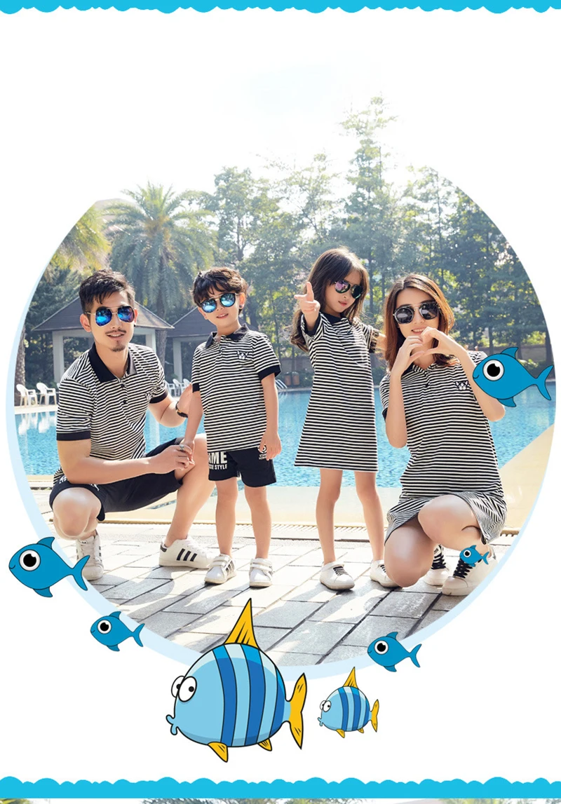 Family Matching Outfits Mother Daughter Dresses Dad Mom Baby Boy Girl Clothes Summer Father Son Striped Polo T-shirt Shorts Set