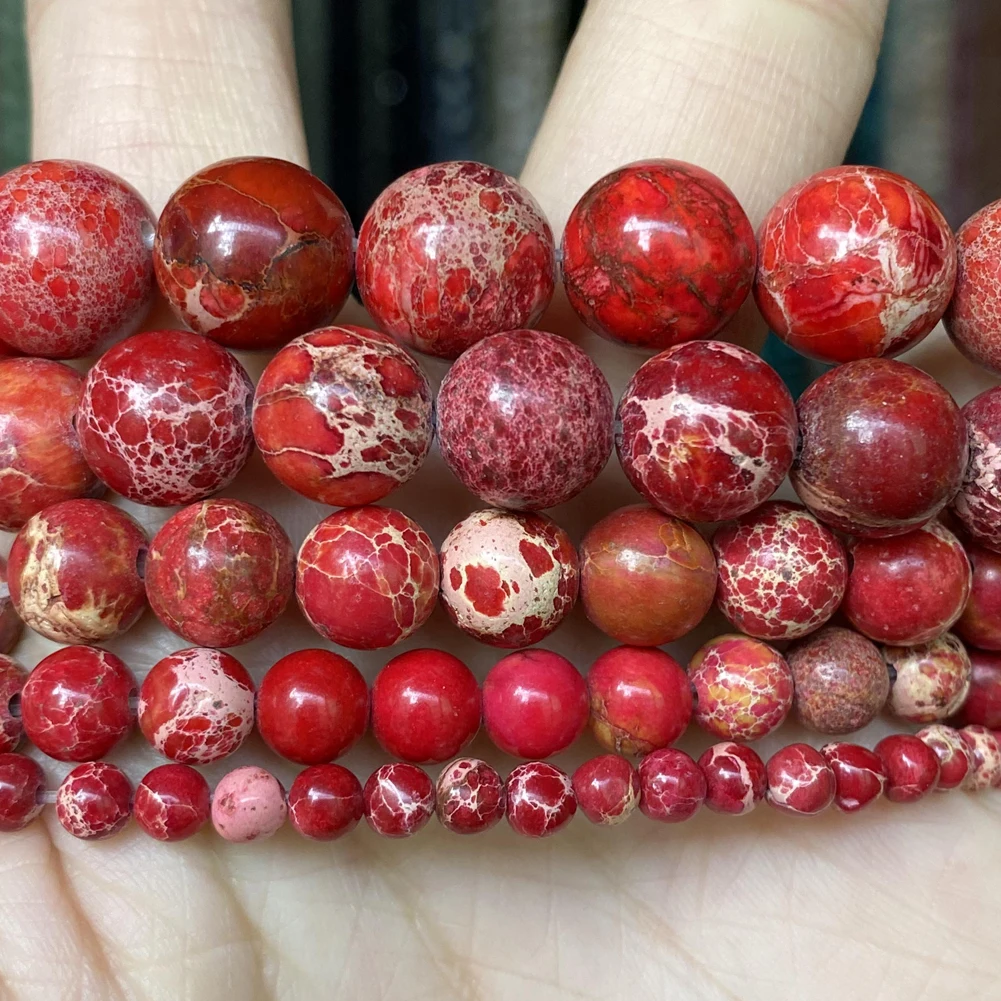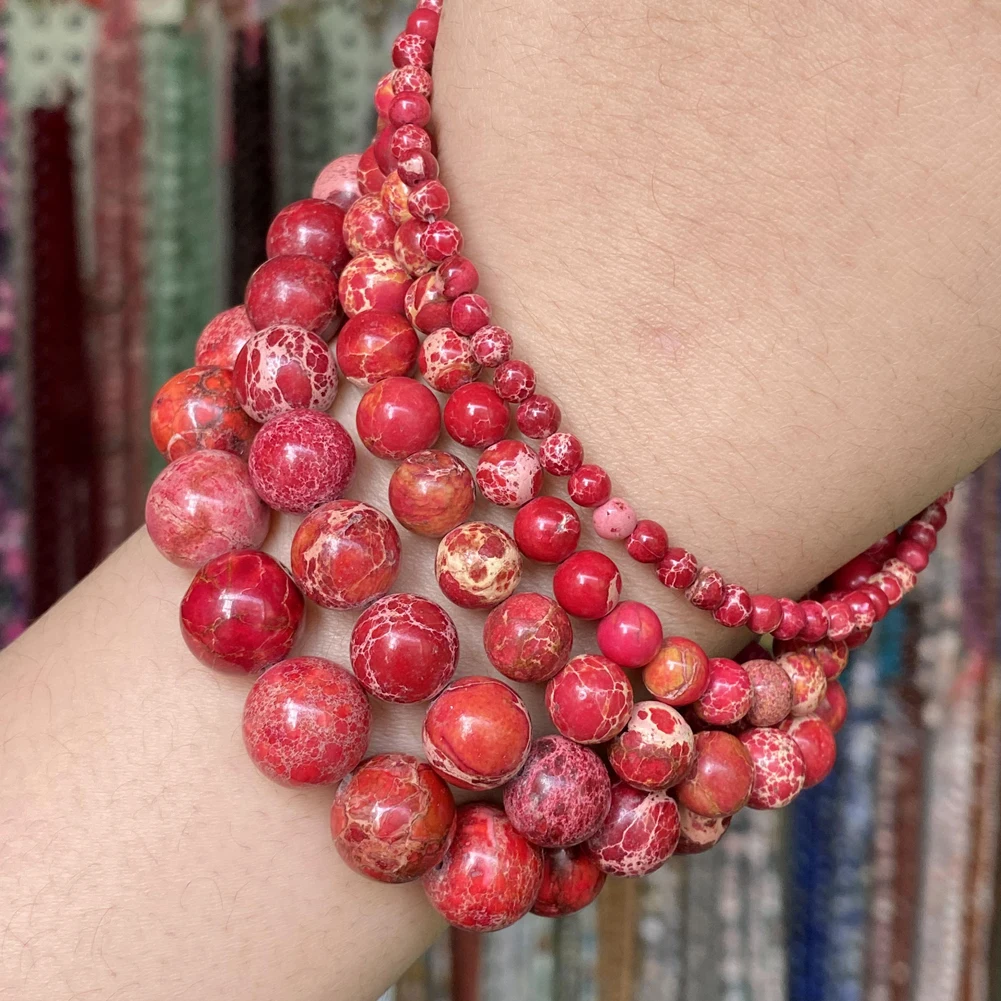 4-12 мм бусины из натурального камня красные морские осадочные яшма круглые свободные бусины для изготовления ювелирных изделий DIY браслет ожерелье аксессуары