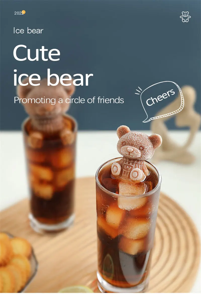 Силиконовая форма для изготовления льда с медведем, креативная форма для приготовления льда, сделай сам, кофейные напитки, молочный чай, стерео, форма для льда с медведем, кухонные гаджеты