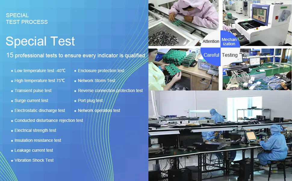10 портов RJ45 гигабитный сетевой коммутатор может работать при широкой температуреОт-40 °C до 75 °C (от-104 °F до 167 °F).Вы можете использовать его в суровых условиях на открытом воздухе.