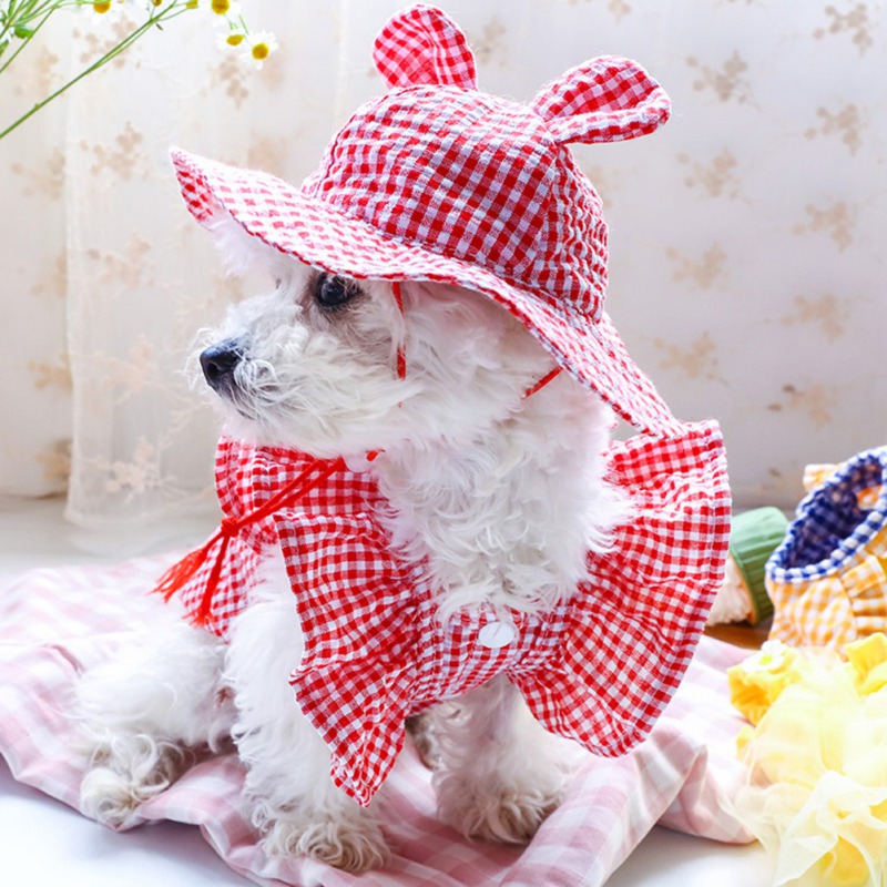 Летняя Милая шапочка для домашних собак с медвежьими ушками, сетчатые шапки для собак, регулируемые шапки для щенков, чихуахуа, котят, кошачьи шапки для собак, аксессуары для домашних животных