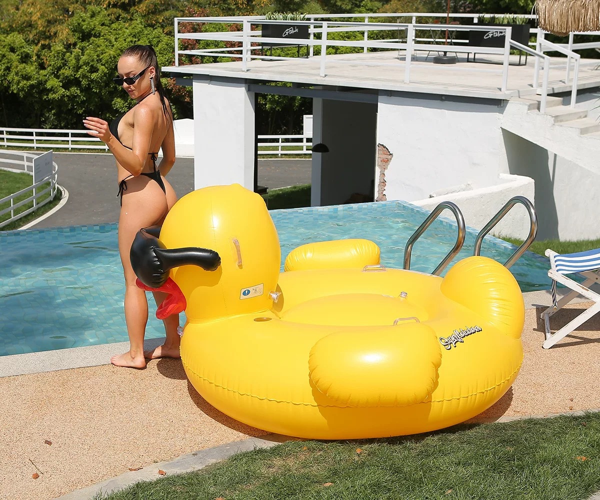 [Стиль]: большие солнцезащитные очки с желтой уткой, с 5 защитными утолщенными ручками и 2 сиденьями, забавные и практичные!