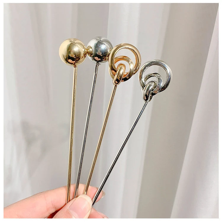 Корейские модные палочки для волос золотого и серебряного цвета с металлическими шариками, круглые палочки для волос, простые аксессуары для волос, женская заколка с одним словом