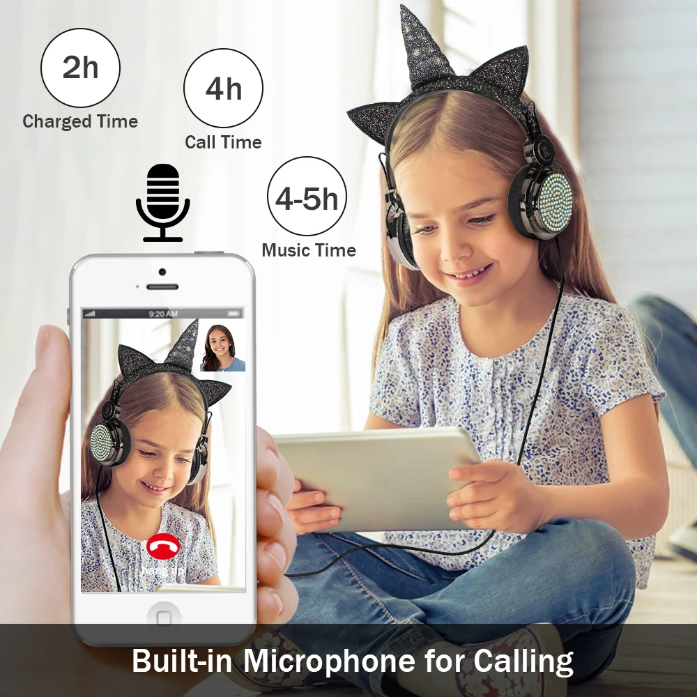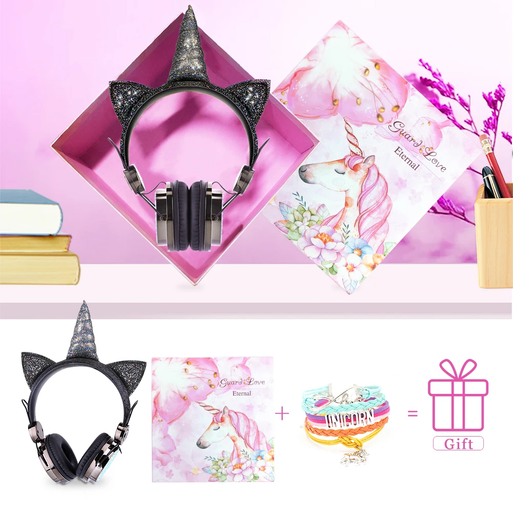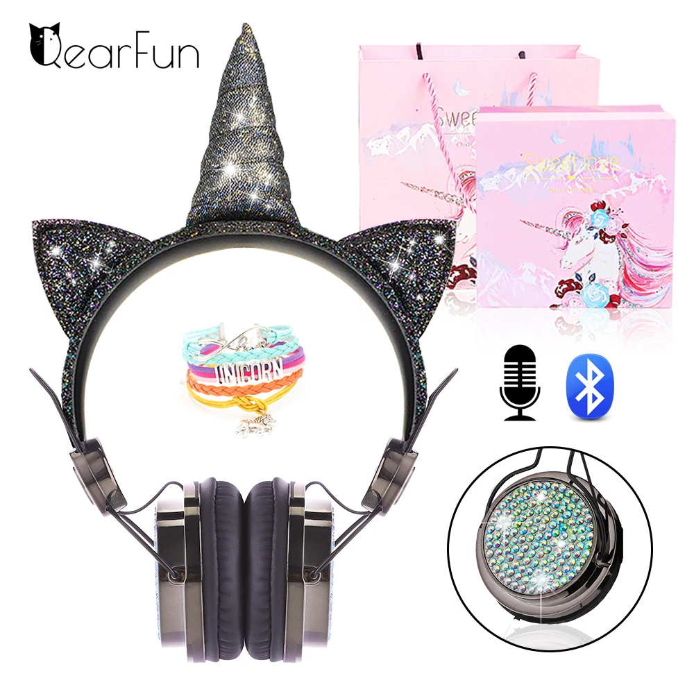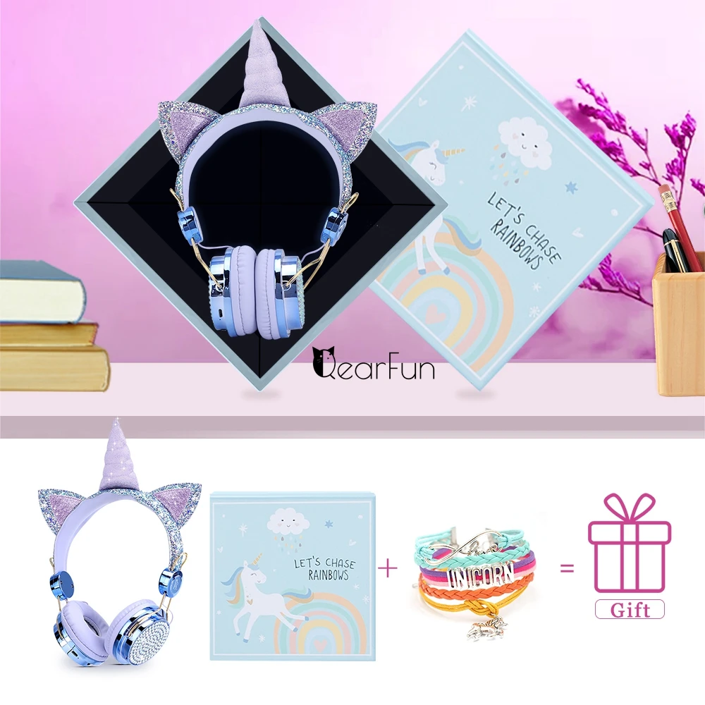 Милые Мультяшные Беспроводные Bluetooth 5,0 наушники с единорогом Встроенный микрофон