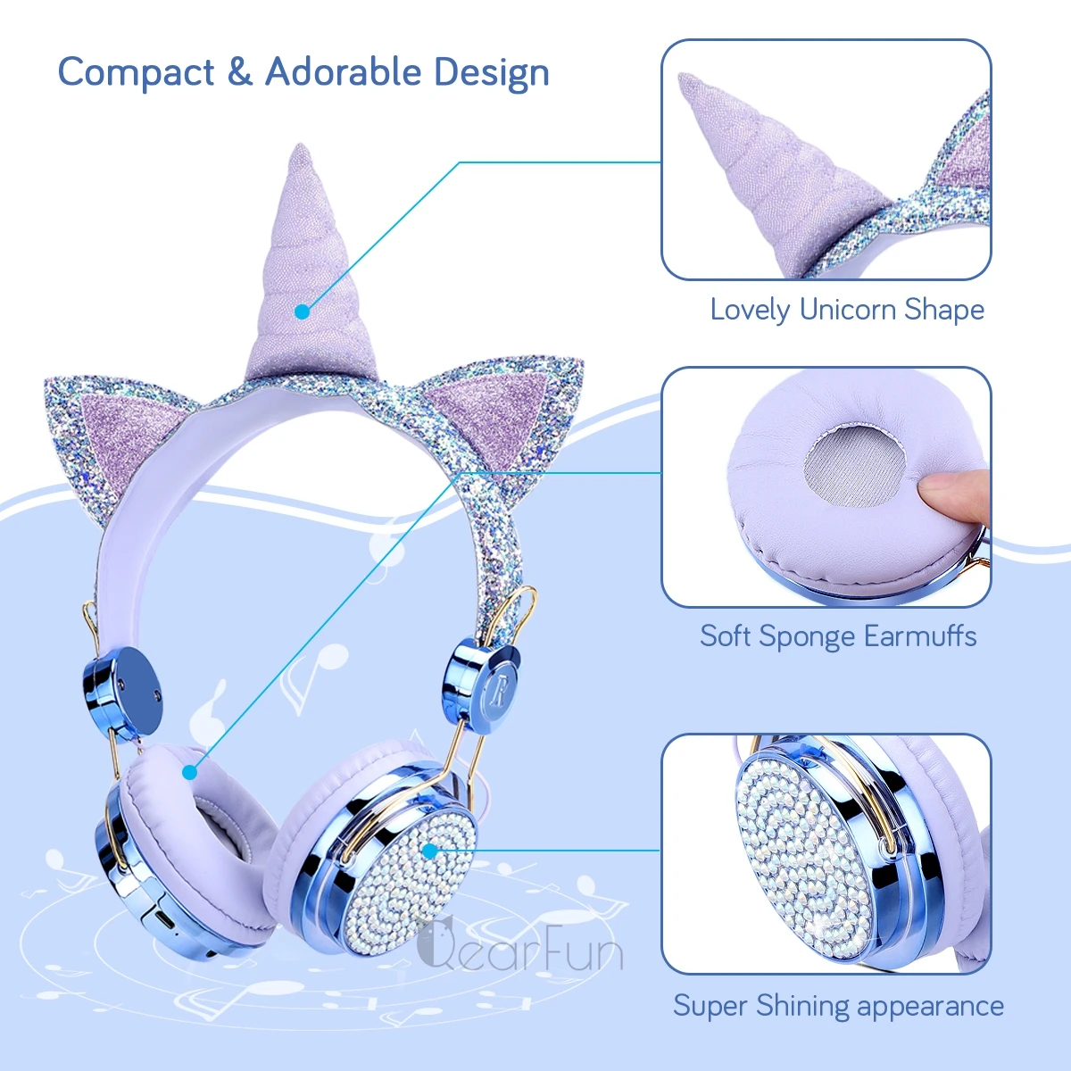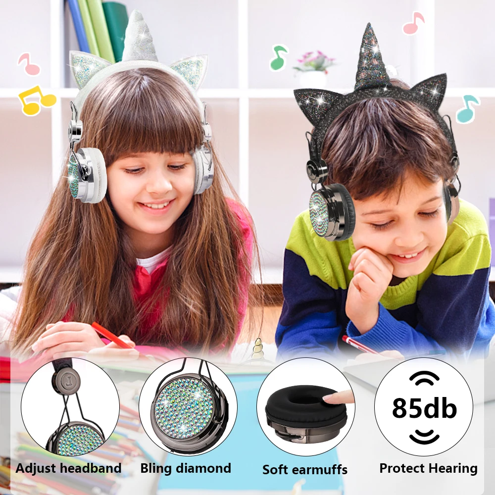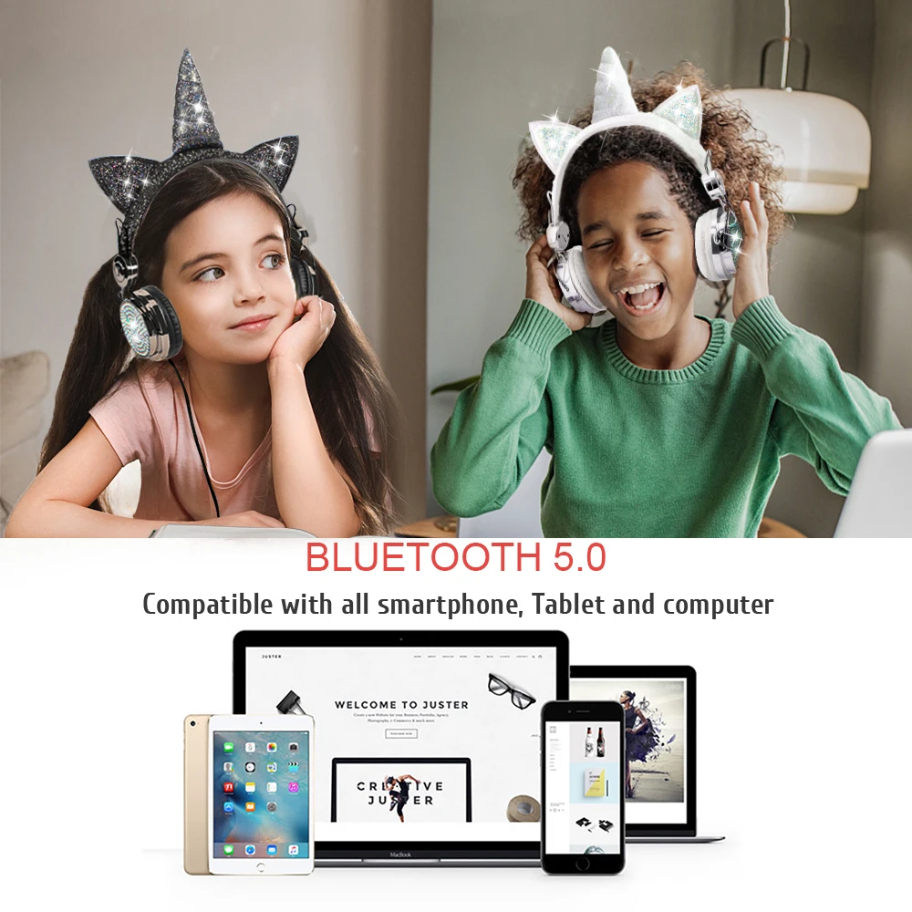 Милые Мультяшные Беспроводные Bluetooth 5,0 наушники с единорогом Встроенный микрофон