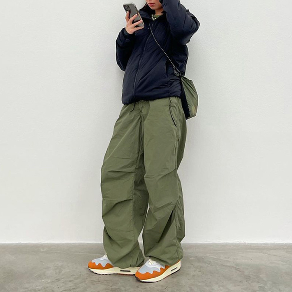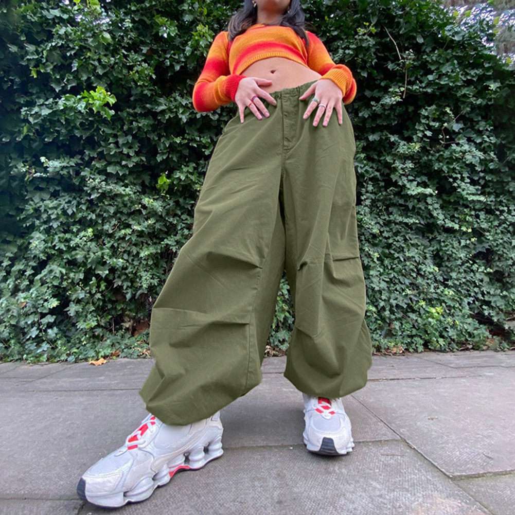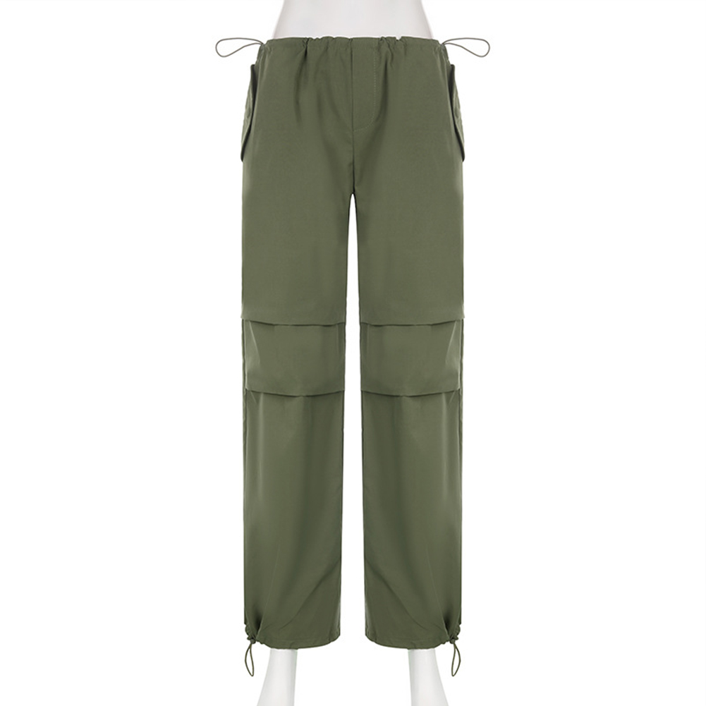 YiYiMiYu светильник хаки брюки карго Уличная Хлопок большой карман Лоскутные повседневные брюки на шнурке низкая талия мешковатые брюки для женщинUS $25,10