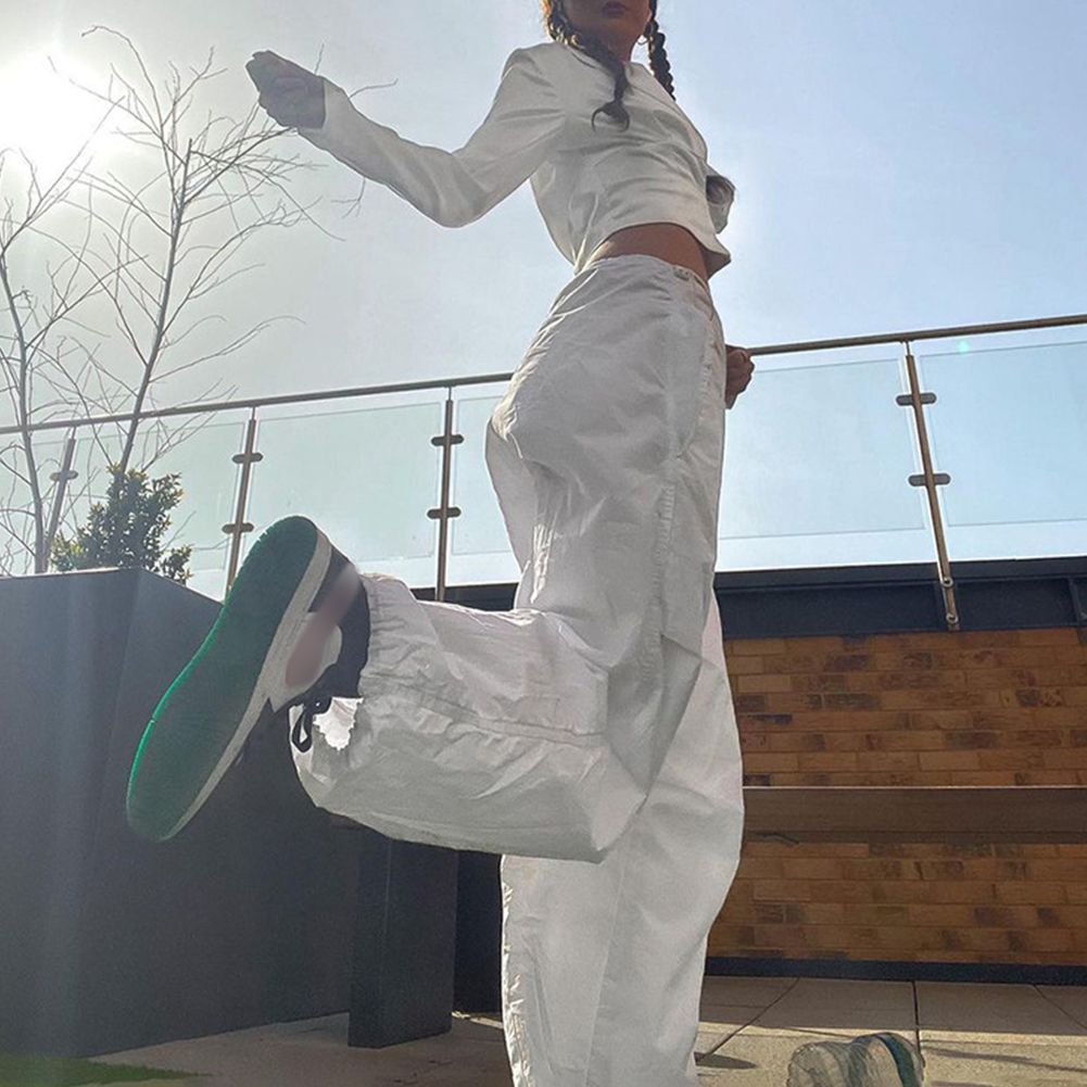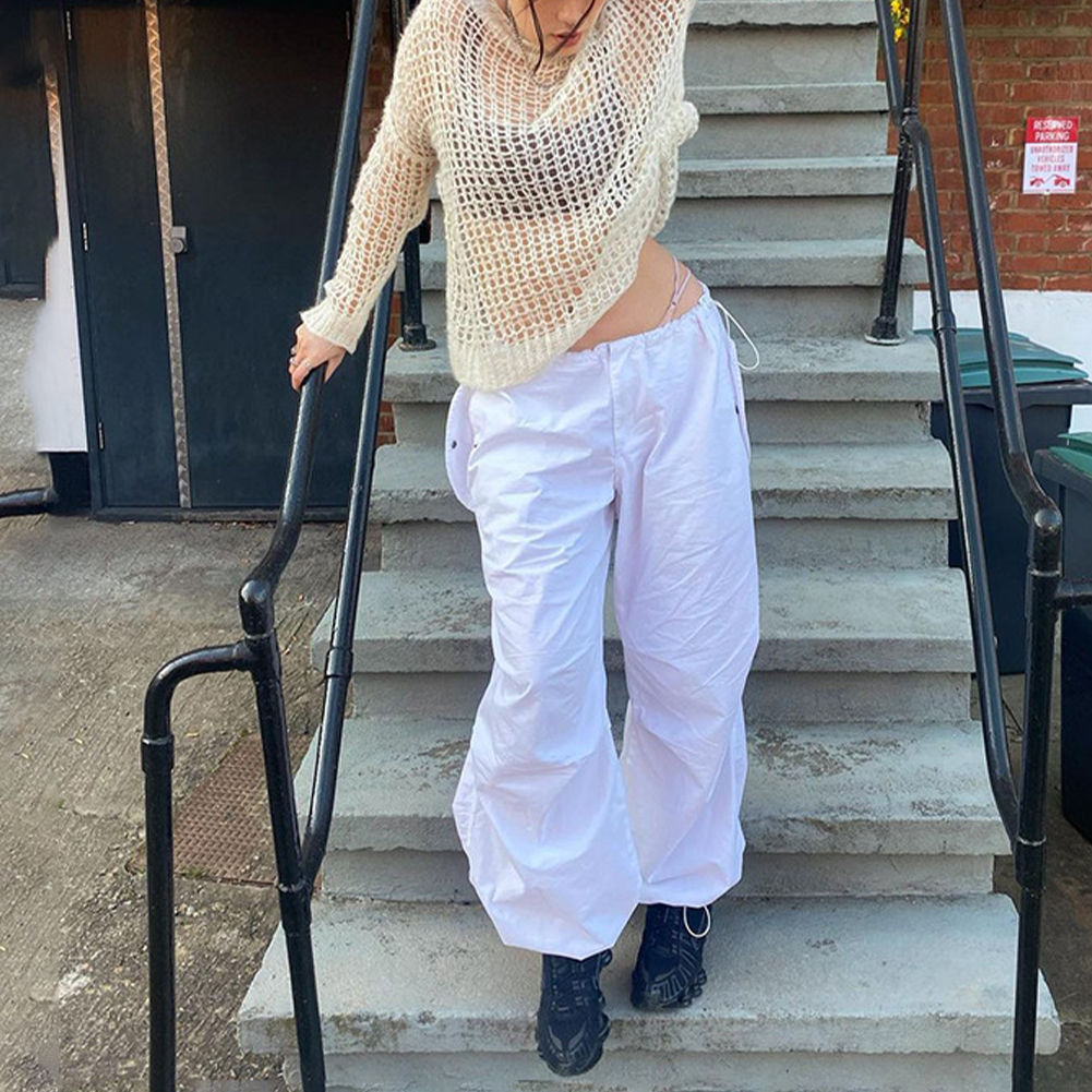 1. Особенности: мешковатые брюки с эластичным поясом, высокой талией, повседневной и свободной посадкой. Акцент на цепочке, пояс с лентой, низ с рюшами, облегающий крой, Повседневный, эластичный подол, расслабляющий крой.