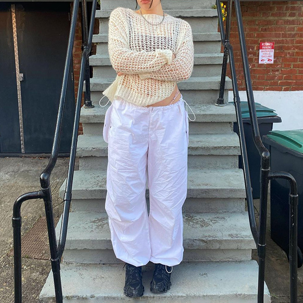 YiYiMiYu/Винтажные свободные топы, летние модные Универсальные повседневные геометрические открытые наряды Y2K, прозрачные Вязаные РубашкиUS $14,25