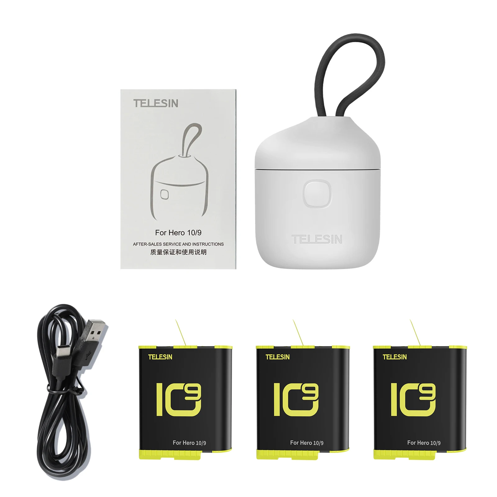 Вариант 1:Комплект зарядного устройства для спортивной камеры TELESIN 1*3 слота для зарядки аккумулятора IP54 Водонепроницаемый + 3*1750 мА · ч Быстрая зарядка с слотами для хранения карт TF Замена для GoPro Hero 10/ 9