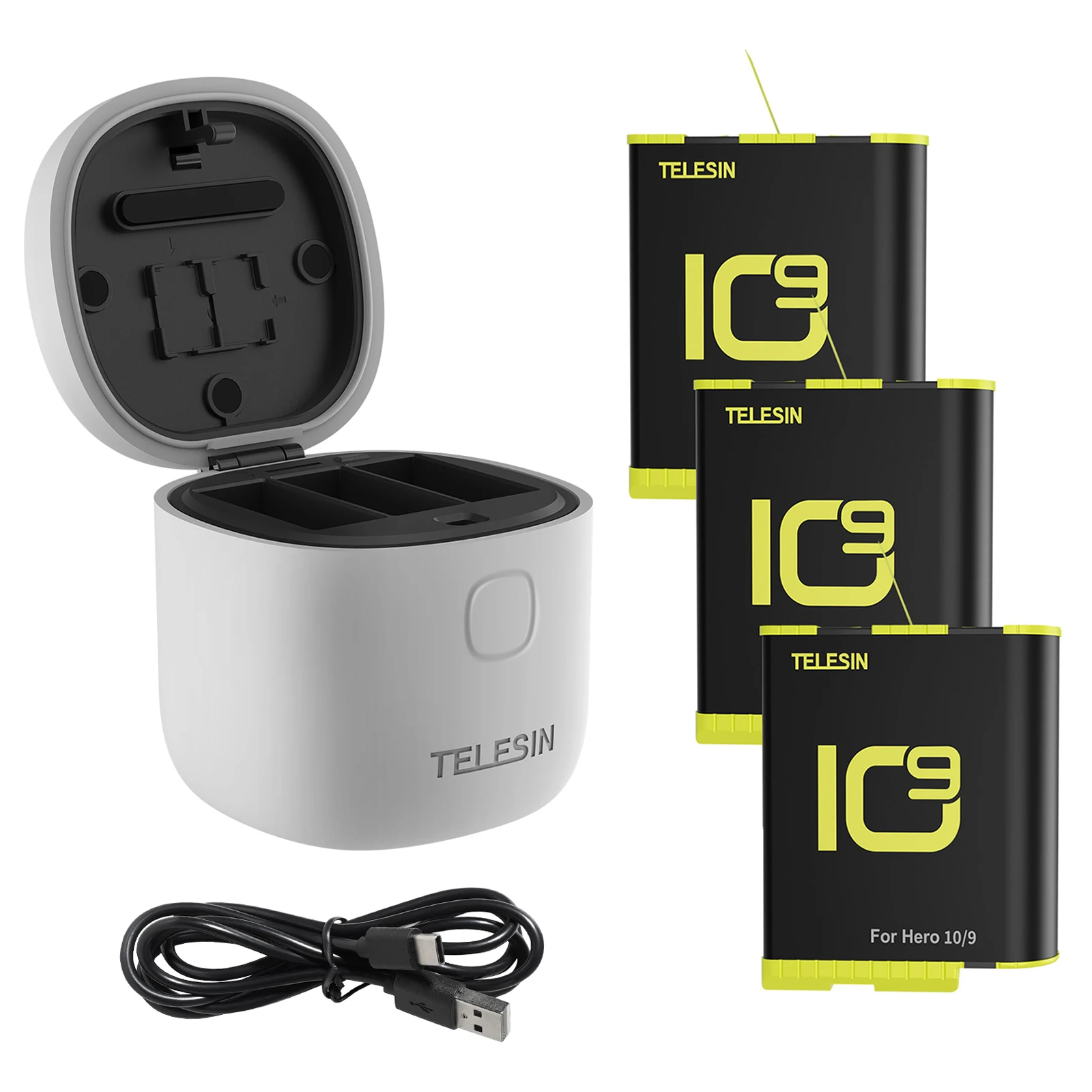 Вариант 3:Комплект зарядного устройства для спортивной камеры TELESIN, 1*3 слота для зарядки аккумулятора + 3*1750 мАч, быстрая зарядка с слотами для хранения карт TF, замена для GoPro Hero 10/ 9