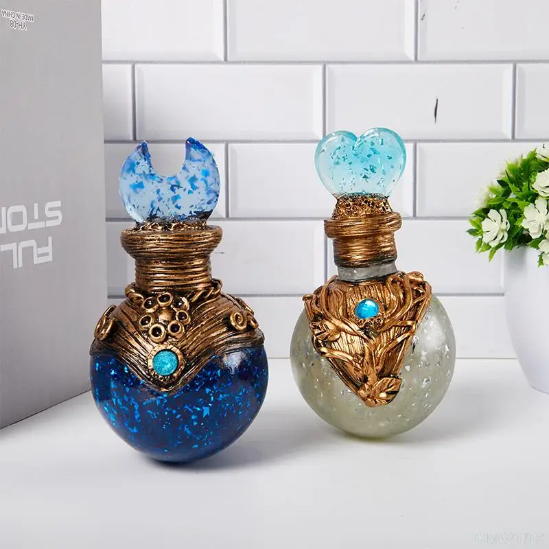 3. Материал: бутылка для зелья ручной работы, украшенная розовой кварцевой Луной и кристаллами, изготовленная из тонкой смолы, долговечна и может выдерживать испытание временем.